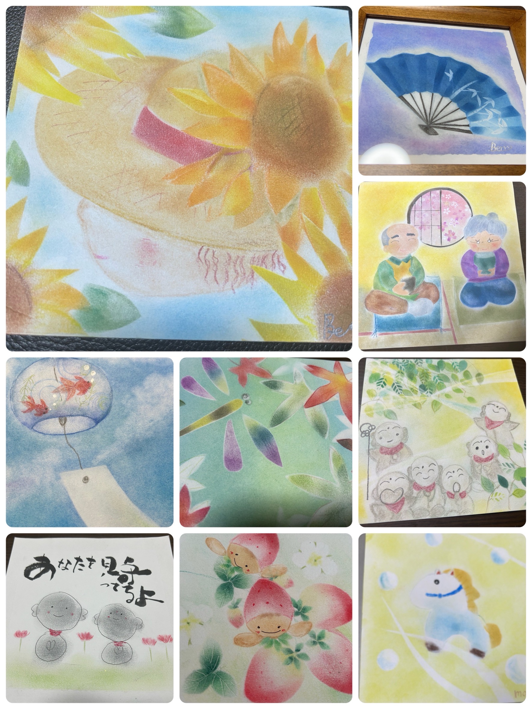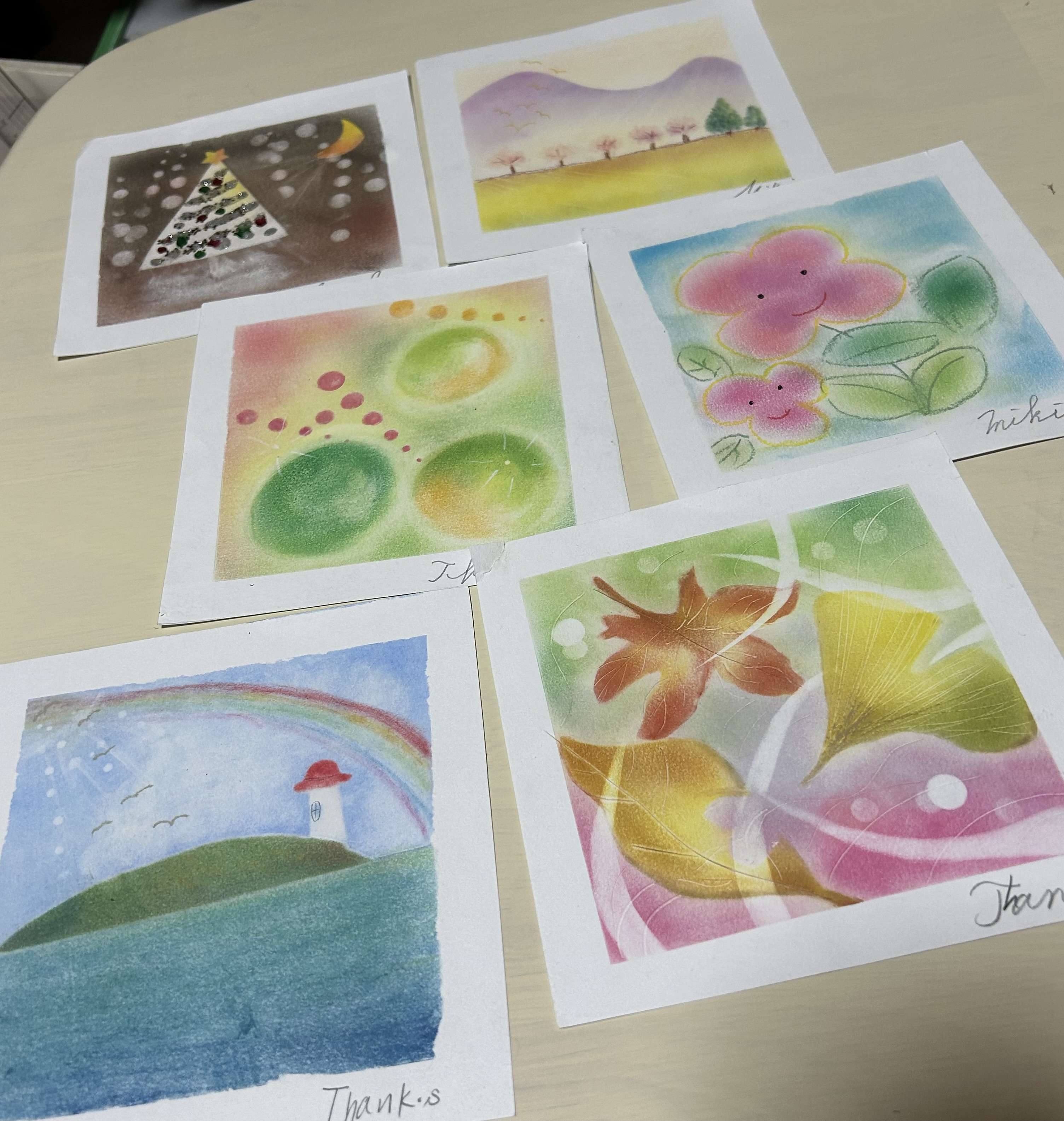 3000円/2時間 ソフトドリンク付き パステルホープアート協会既定の用紙にいろいろな技法を使って描いていきます。