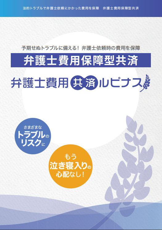 | もう泣き寝入りする必要はありません 弁護士費用共済ルピナスは、さまざまな法的トラブルに直面した場合、弁護士への依頼の際に発生する費用を保障する共済です。 |