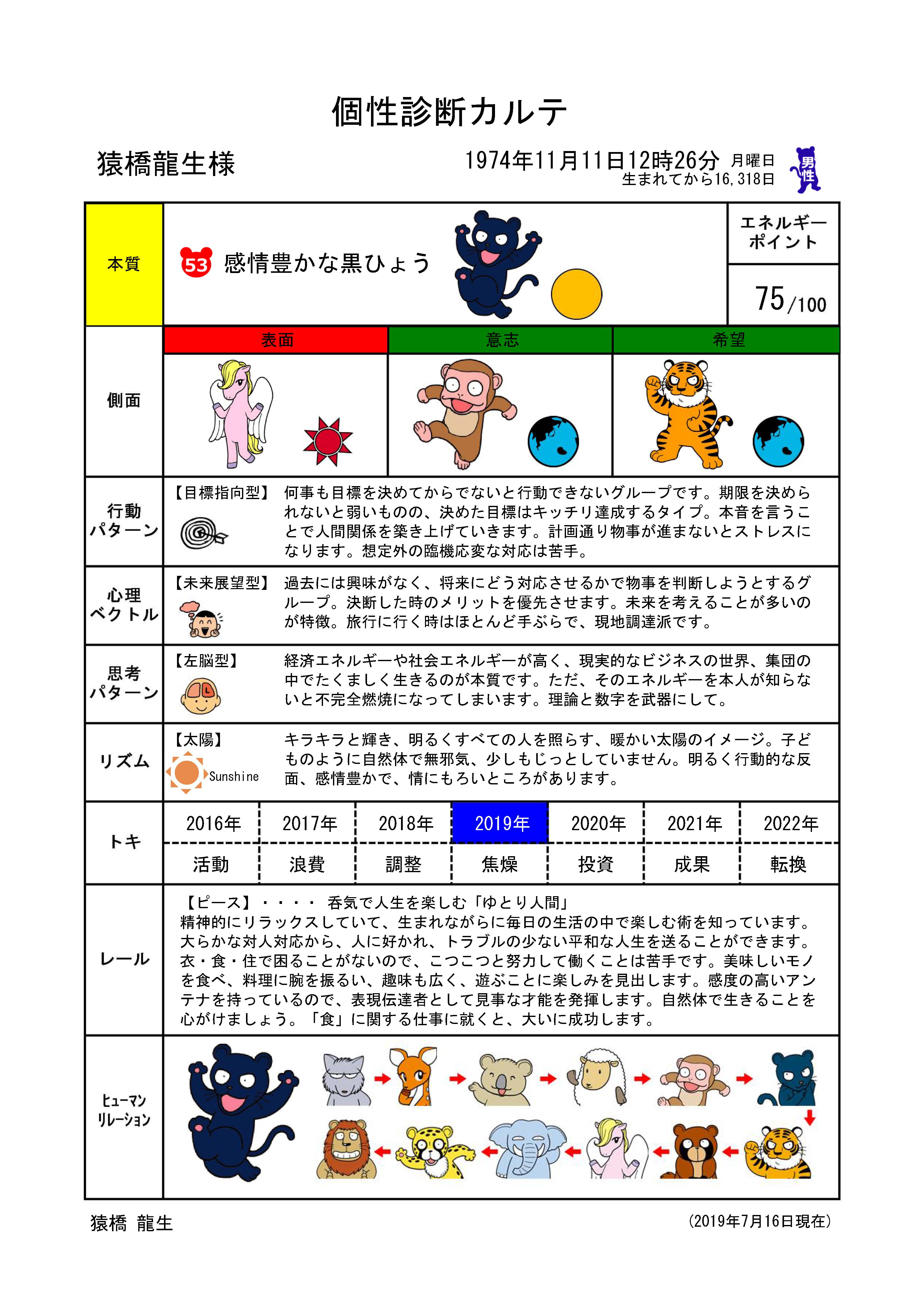 総合個性分析・本質分析・生涯運気/今年の運気・レール分析・能力診断・子育てレポート などのカルテ発行とそれをもとに説明・カウンセリングを行います