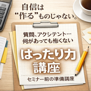 そんな不安を抱えたままセミナーに立つのではなく、 準備で安心を作り、堂々と立てる状態を目指します。