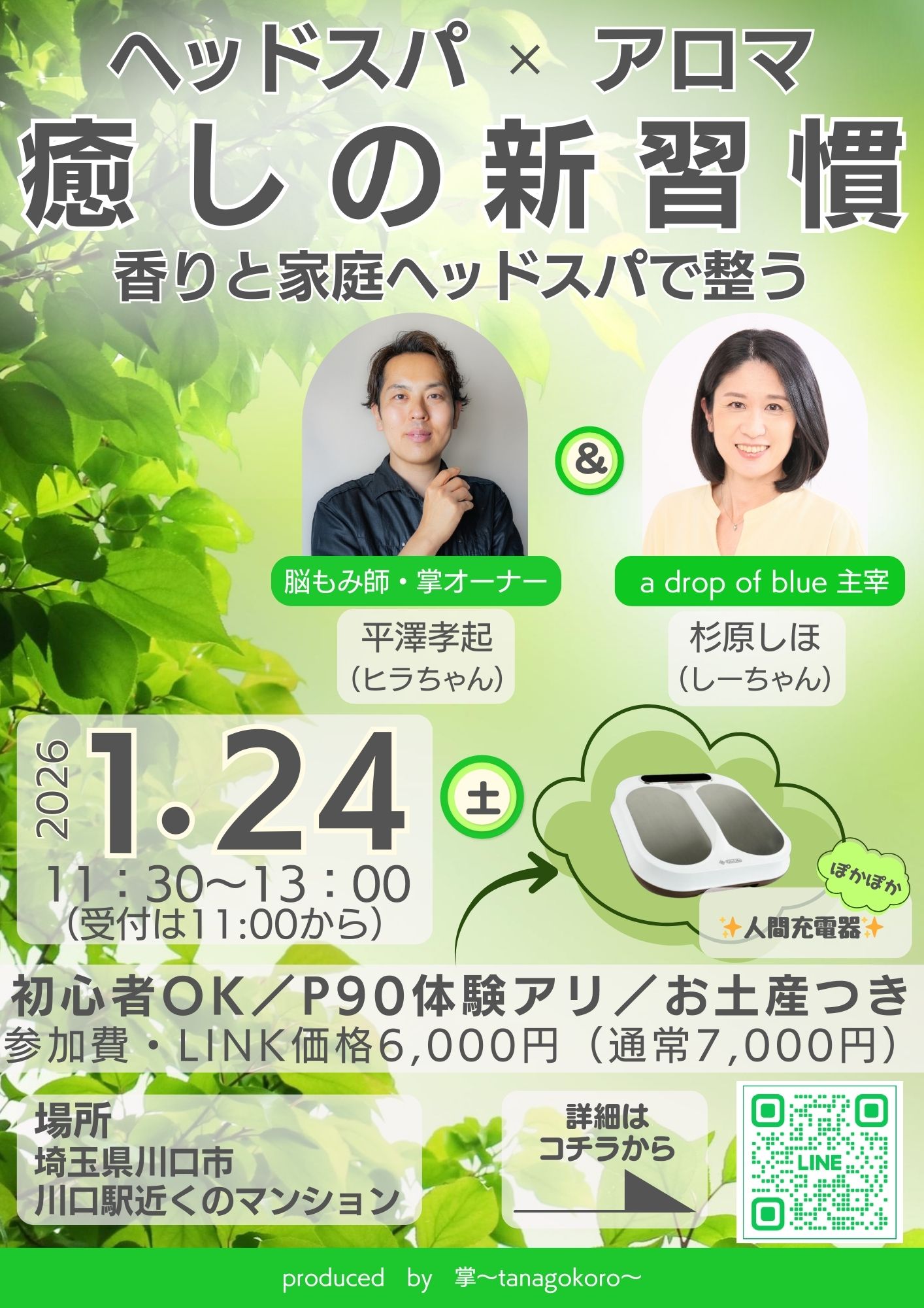 ヘッドスパ✕アロマコラボイベントです。身体も心も整える体験、参加型になります。
