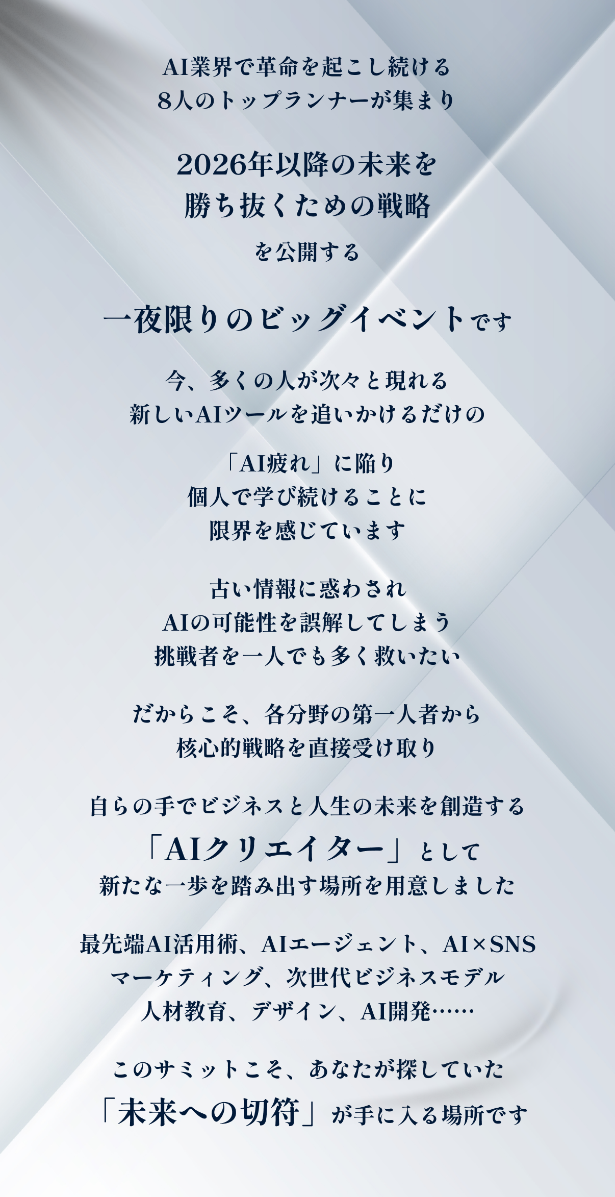 未来を創る8名の先駆者が 最先端AI活用法・新時代のAIツール ・未来のビジネス設計図 その全てを特別公開!!