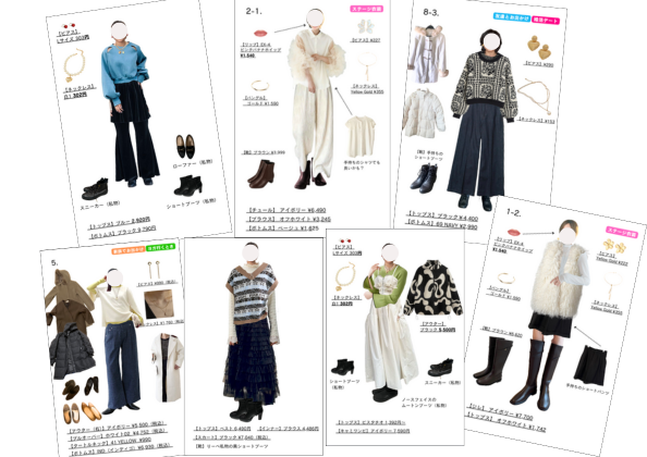 ※購入リンク付きコーディネート資料を納品(コーデは約10パターン / 購入は自由です)