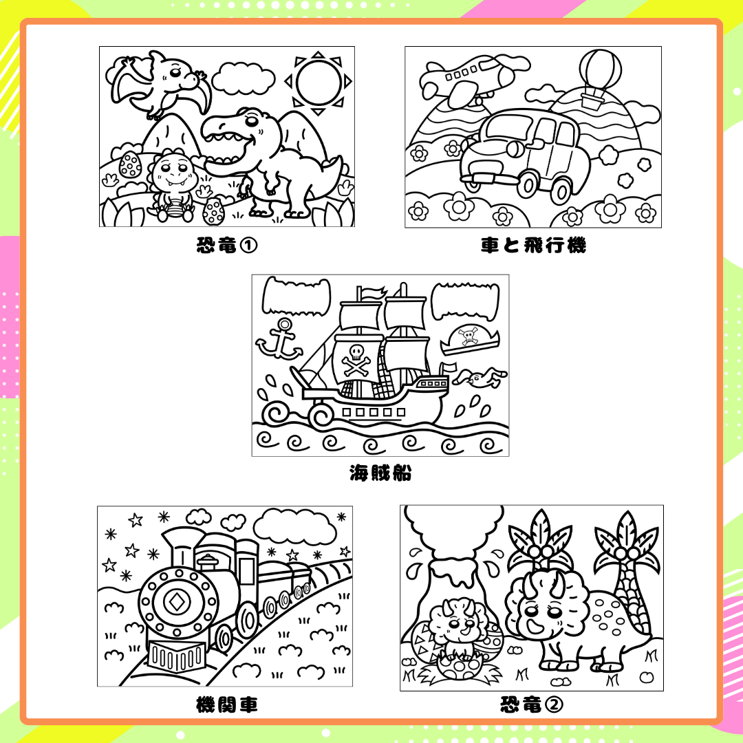 線は太めで、未就学児さんでも塗りやすいデザインにしています。