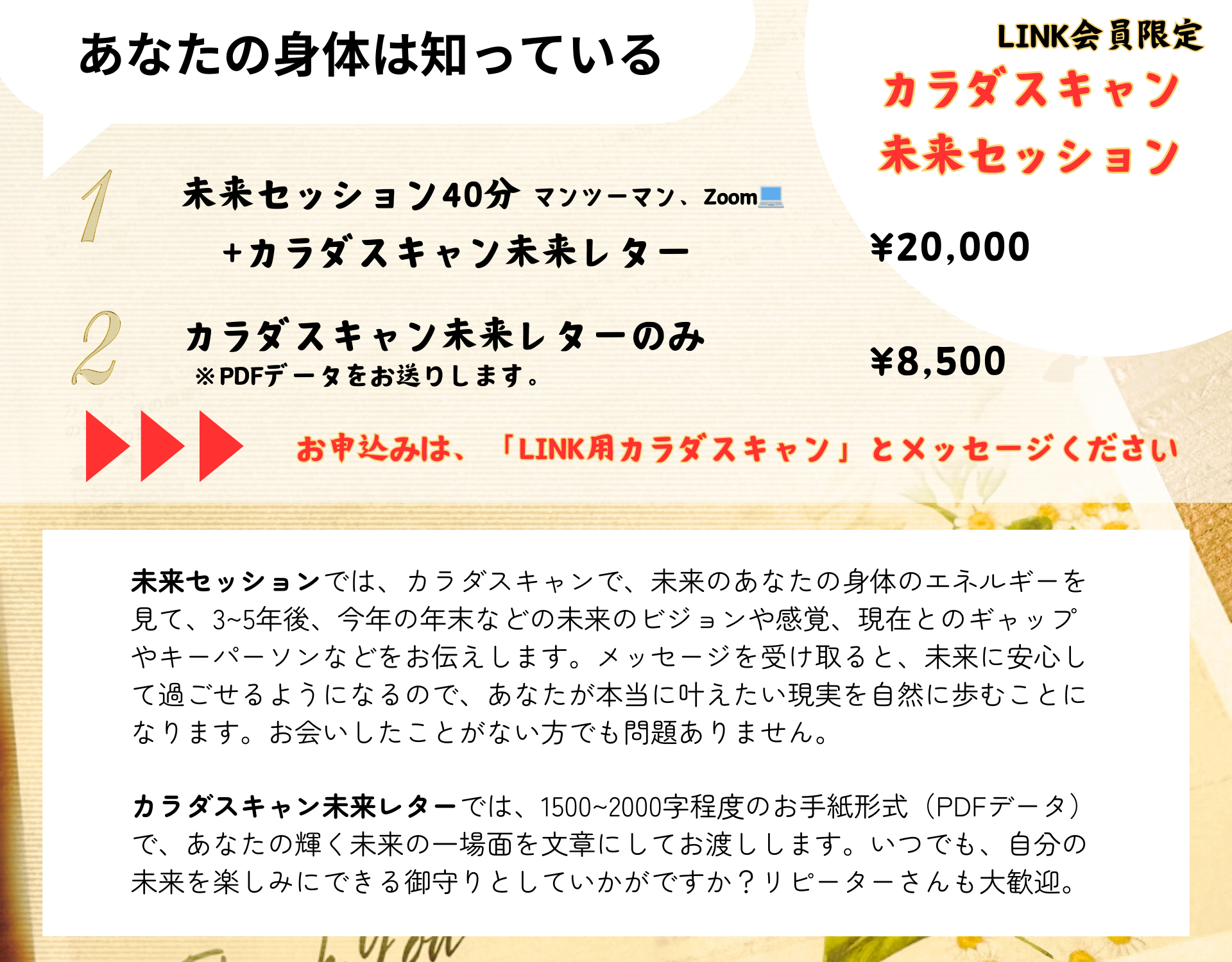 未来セッション40分+カラダスキャン未来レター ¥20,000