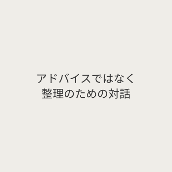 物事がうまく進まないときに、状況や考えを整理し「何が起きているのか」を言葉にするサポートをしています。