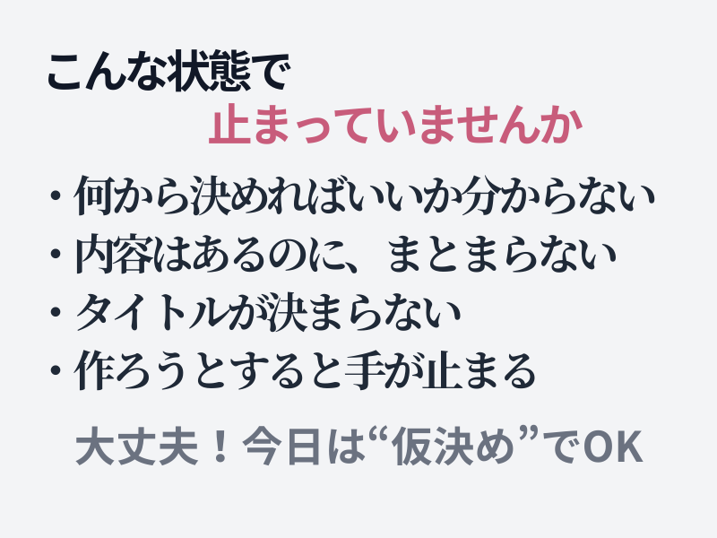 ※正解探しは不要です。今日は“仮決めでOK(60点でOK)”で進みます。