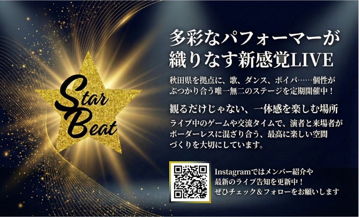 STARBEATについての最新ライブ情報 ・参加希望・県内、県外からのゲスト出演、出店などは下記Instagramまでお問い合わせください✨