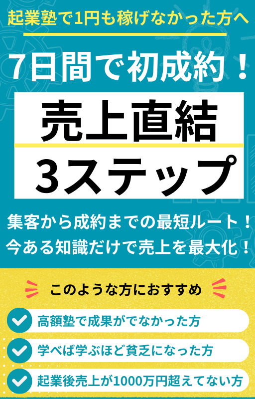 集客がしんどくって、売上があがらない方へ!お金をかけずに時間をかけずに成果を出す!7日間で成約につなげる「売上直結3ステップ」のコンサルセッションです。シンプルな全体像(ビジネスモデル)から、