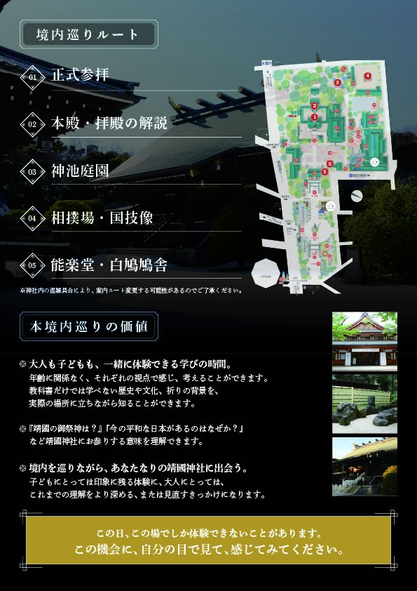 ※境内巡りは、1 月31 日に開催されるキッズスクールin 靖國神社のプログラムの一部として開催されます。