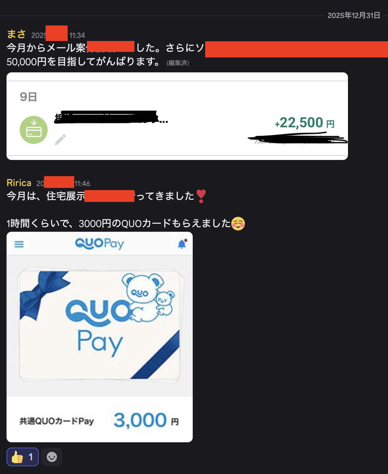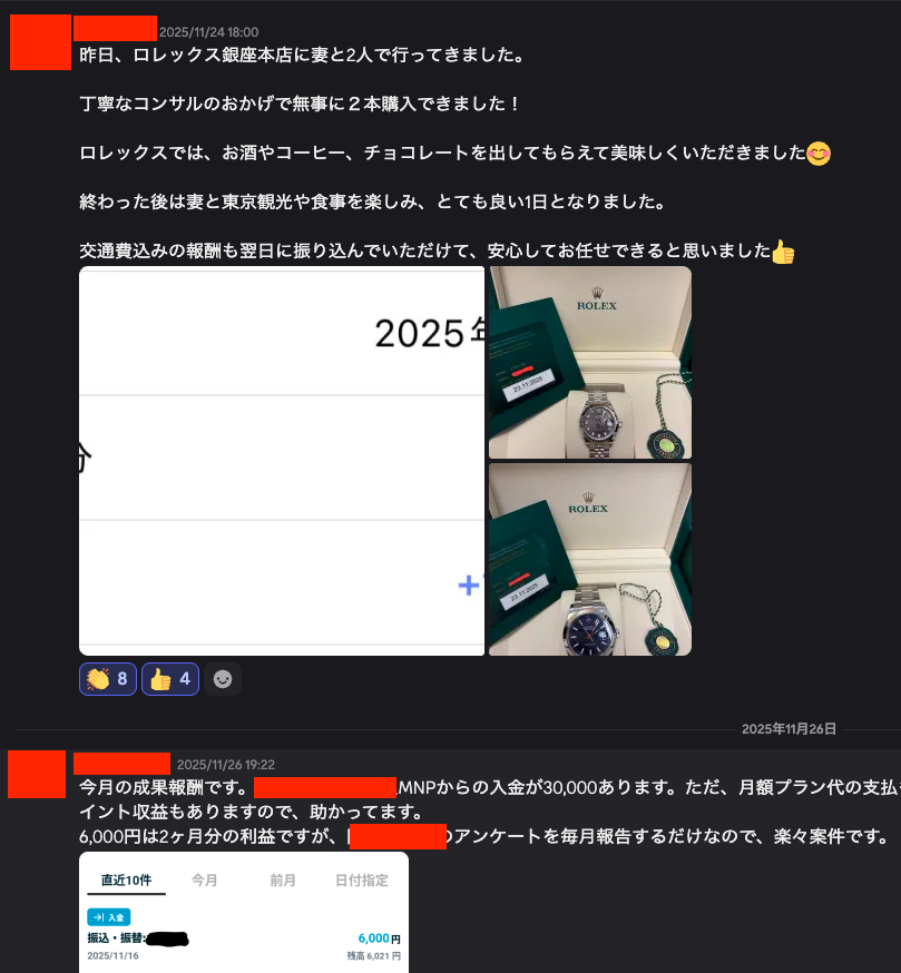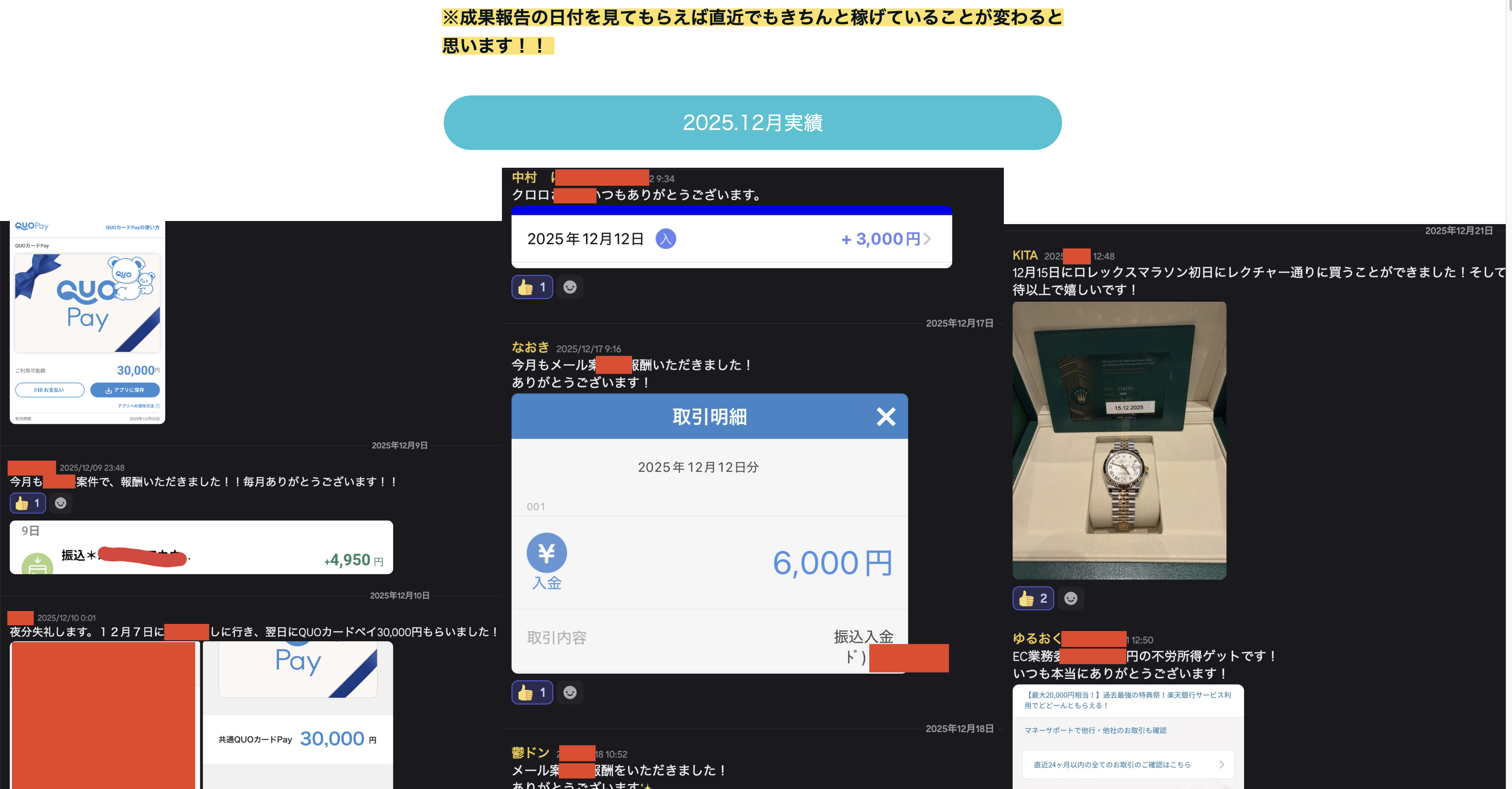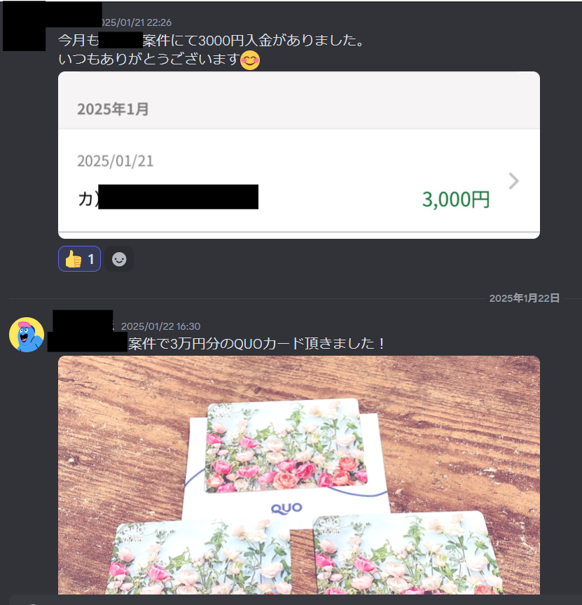 投稿日付・振込のスクショや写真で載せていますのでこちらのサロンが