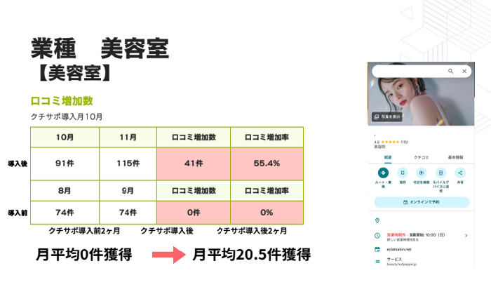 ・美容系サロン:月平均9.8件 → 37.3件(導入後6ヶ月)