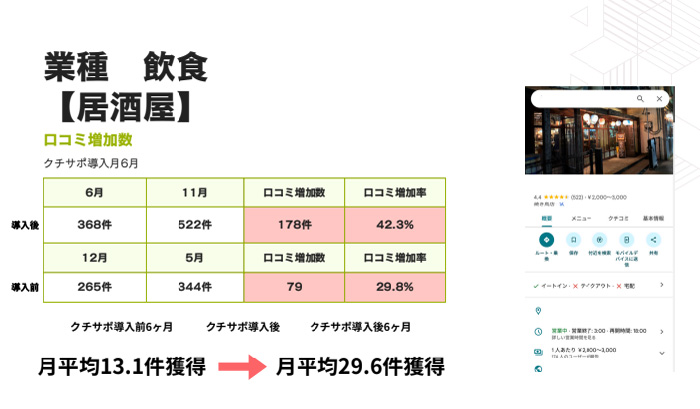 ・居酒屋:月平均4.4件 → 11.8件(導入後5ヶ月)