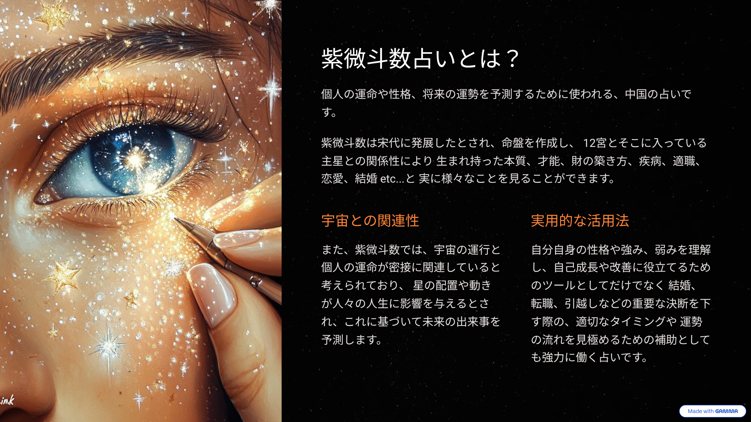 紫微斗数鑑定セッション (60分):本質、才能、魅力、運命の流れを言語化します