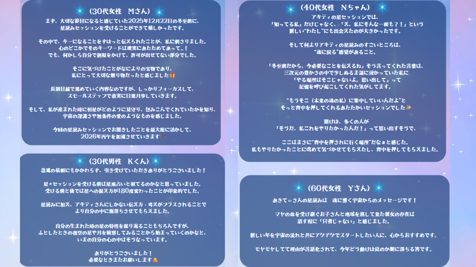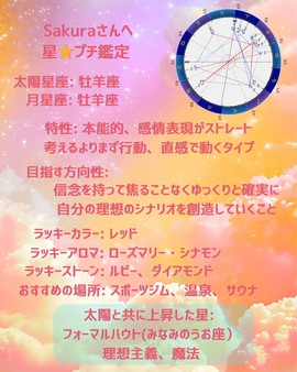 ▶希望者には「アストロ風水」もしくは「アストロマップ」鑑定もお付けします!