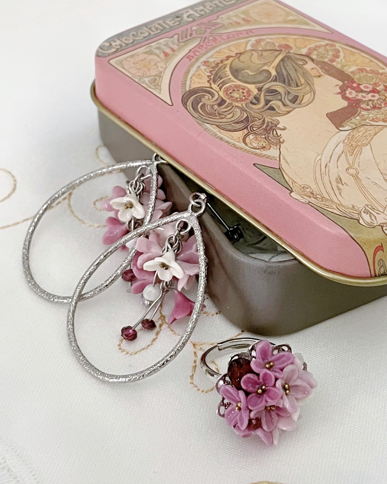 花びら一枚一枚から手作業で咲かせたお花パーツによる優雅で繊細なアクセサリー。芸術を纏うような、特別な一点との出逢いをお楽しみいただけます。