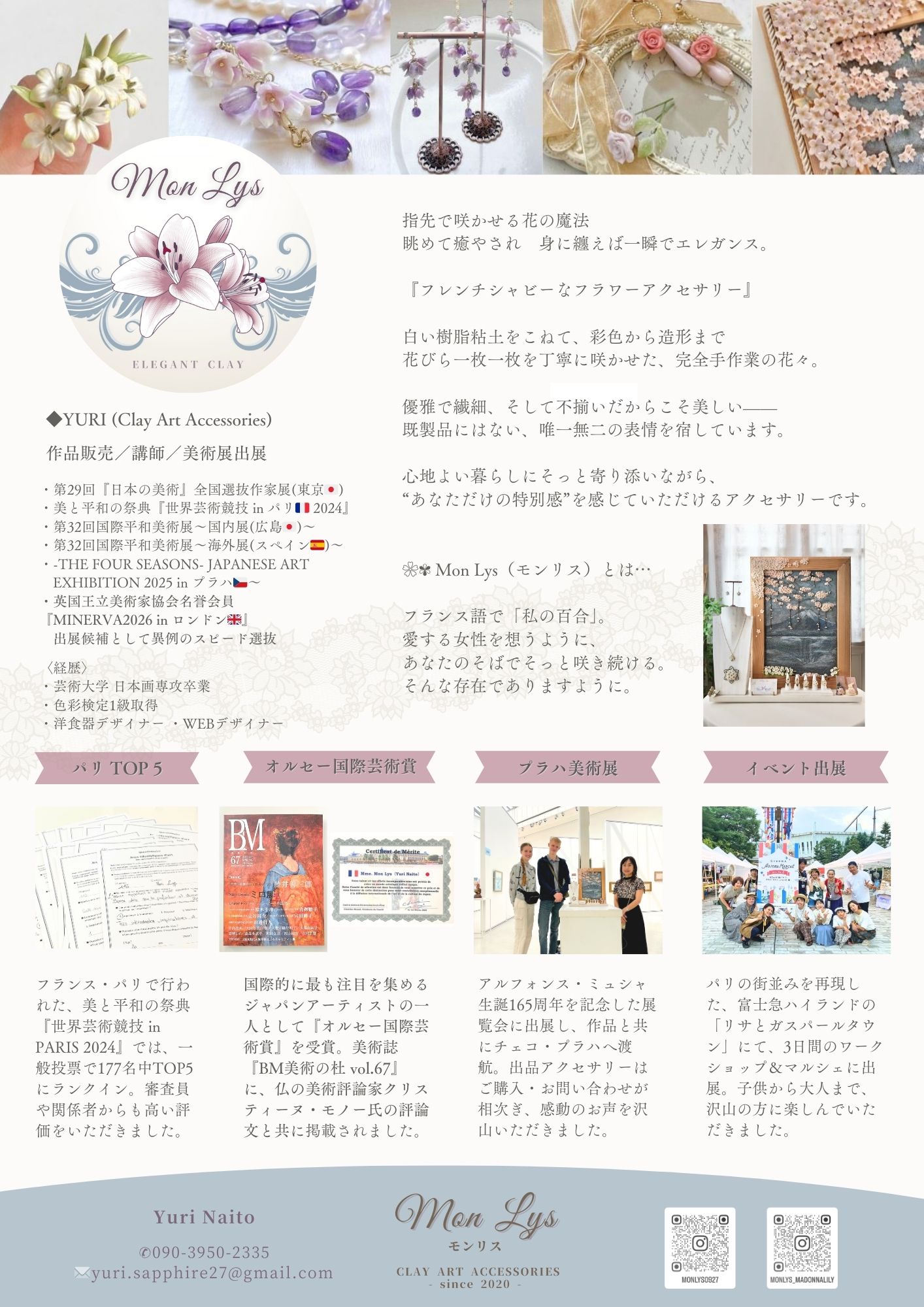 現在は、クレイアートアクセサリーブランド「Mon Lys」を運営。