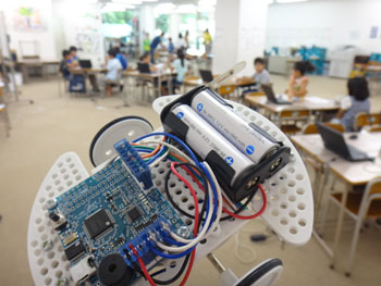 プログラミングでロボットに演奏させたり、爆走もさせます。