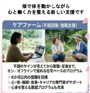 ケアファームは、原則6か月以内の復職を目標とします。長期間の休職は、本人にとっても企業にとっても負担が大きくなります。適切なタイミングでの復職を実現するため、計画的にプログラムを進めます。