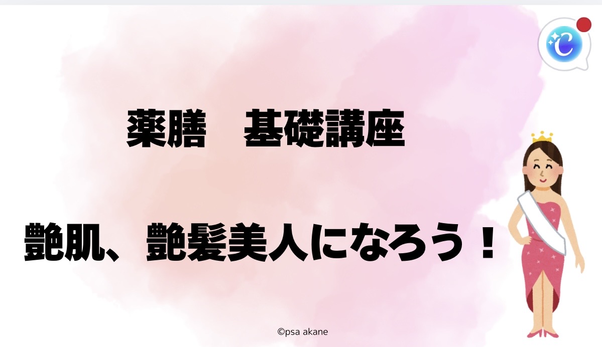ダイエット、艶髪艶肌、自律神経、快眠からどれかおひとつ選んで下さい。約1時間の講座になります。