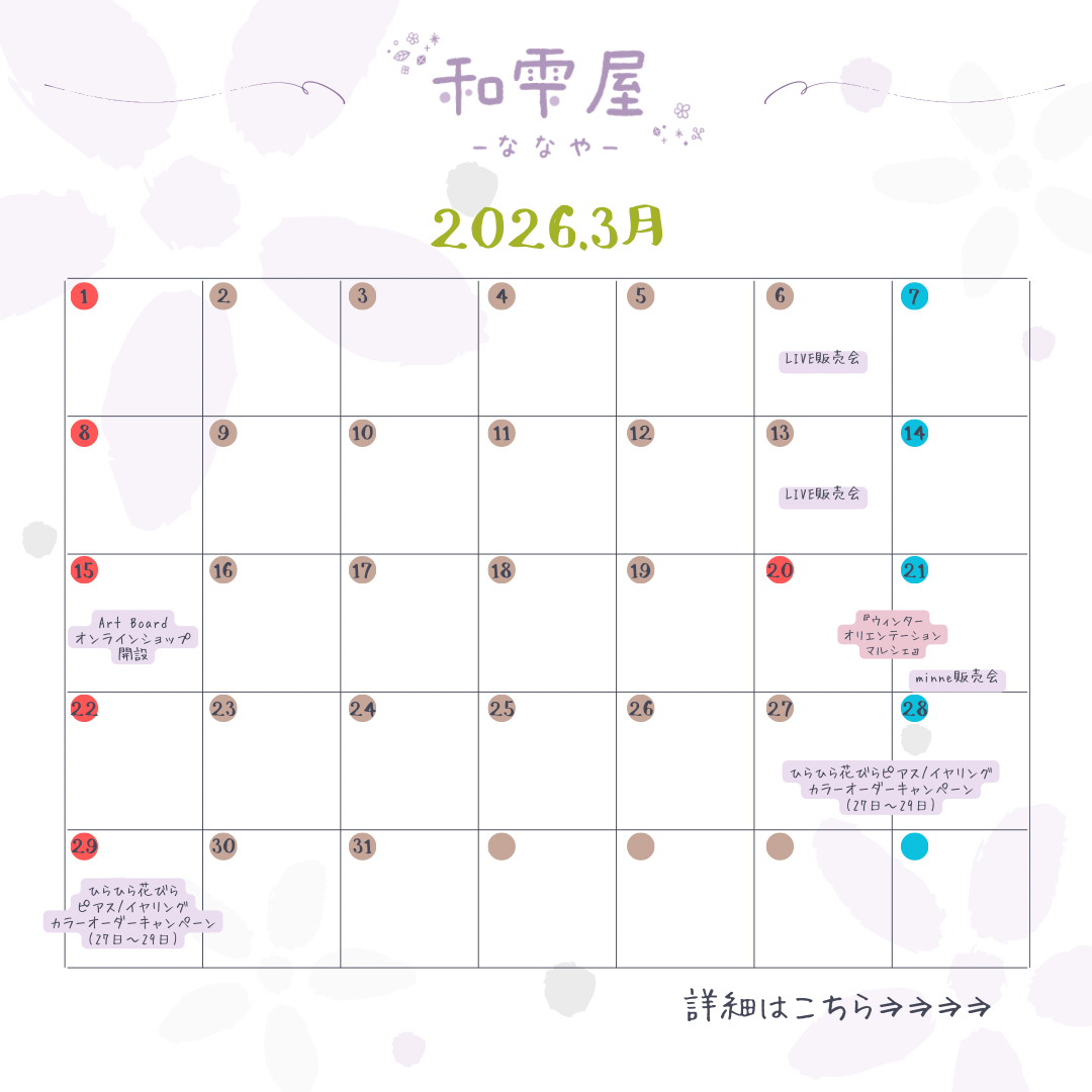 【2026年3月 和雫屋ーななやー販売スケジュール】