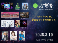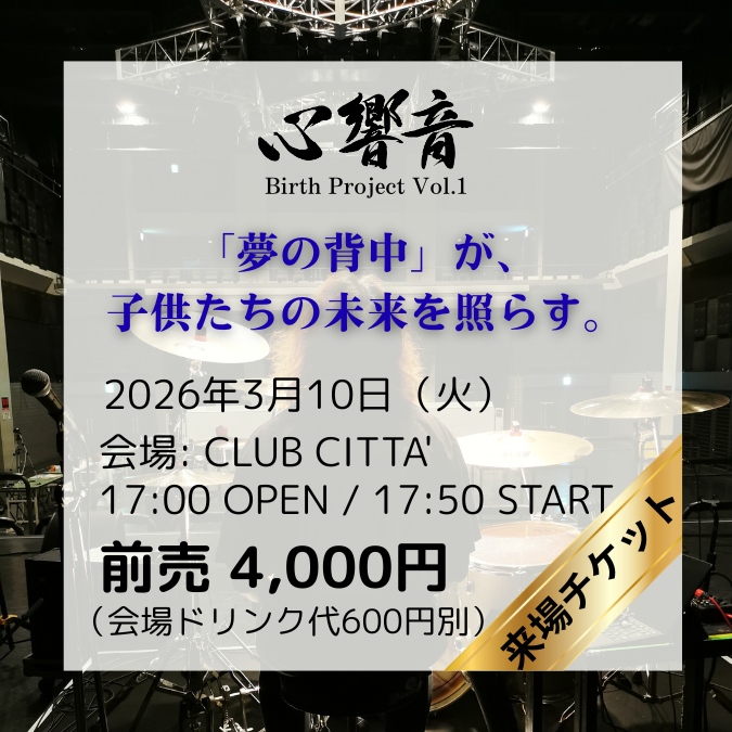 来場チケット料金:当日4,500円/前売4,000円/学生500円(要学生証・ドリンク別)/中学生以下無料