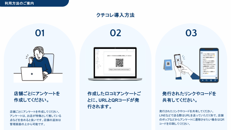クチコレの設定もあわせて行い、口コミ獲得の仕組みを構築します。