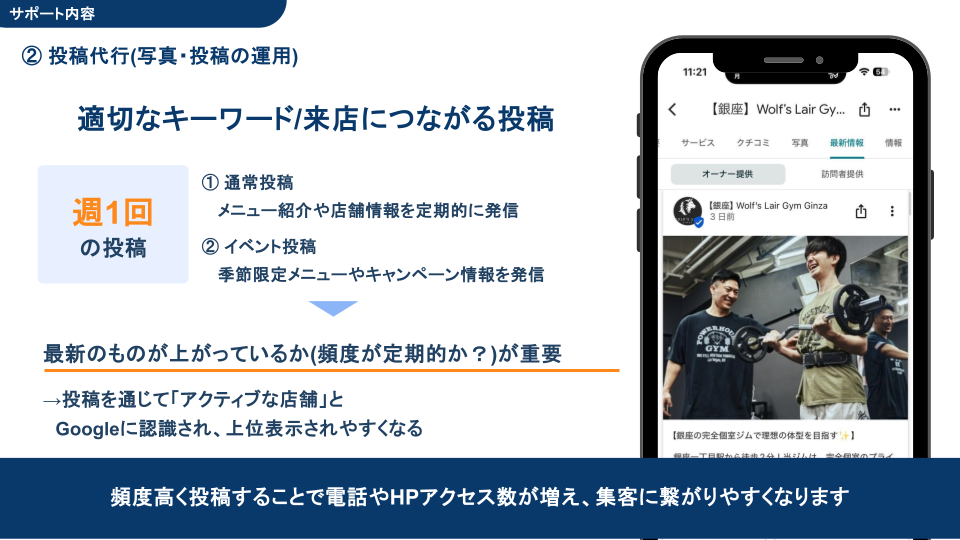 写真・投稿の最適化: 「行ってみたい」と思わせる魅力的な店舗プロフィールの作成。