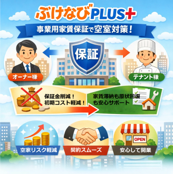 株式会社RRB(ぶけなびFC/関西窓口)は、居抜き特化の物件データベースと専任アドバイザーによる実務伴走で、物件取得から開業までを一気通貫でご支援します。初期費用の最適化を図れる家賃保証「ぶけなびPLUS」の活用や、退店時の造作買取りまで、フェーズに応じた最適解をご提案します。まずは無料会員登録・ご相談から。