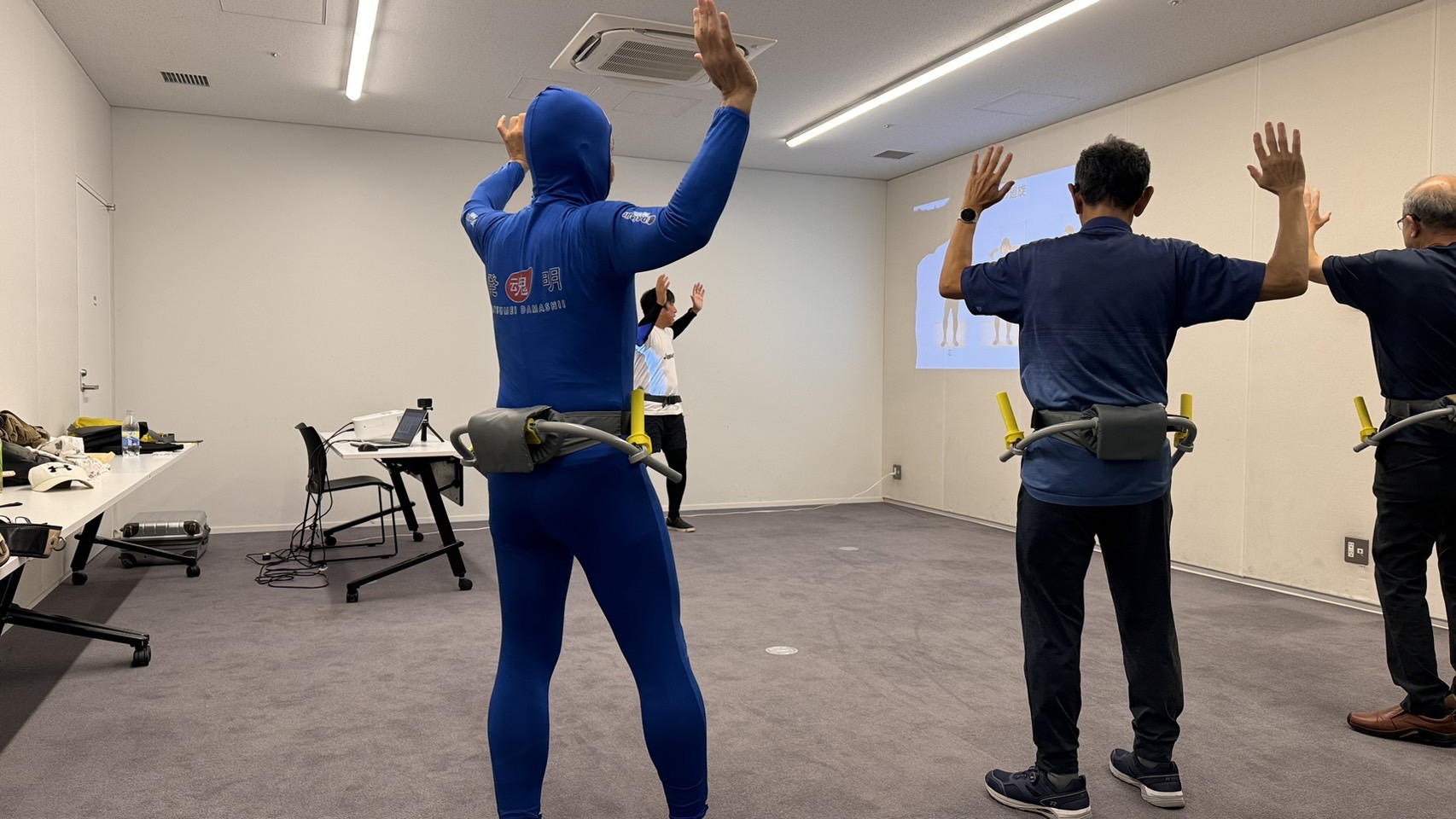 ③ジョグバーを装着し、江戸時代の歩き方実技講座