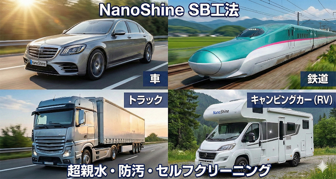 カテゴリ具体的な対象例期待される効果一般・商用車自動車、高級セダン、トラックや公共交通機関タクシー、資産価値の維持、洗車コストの削減