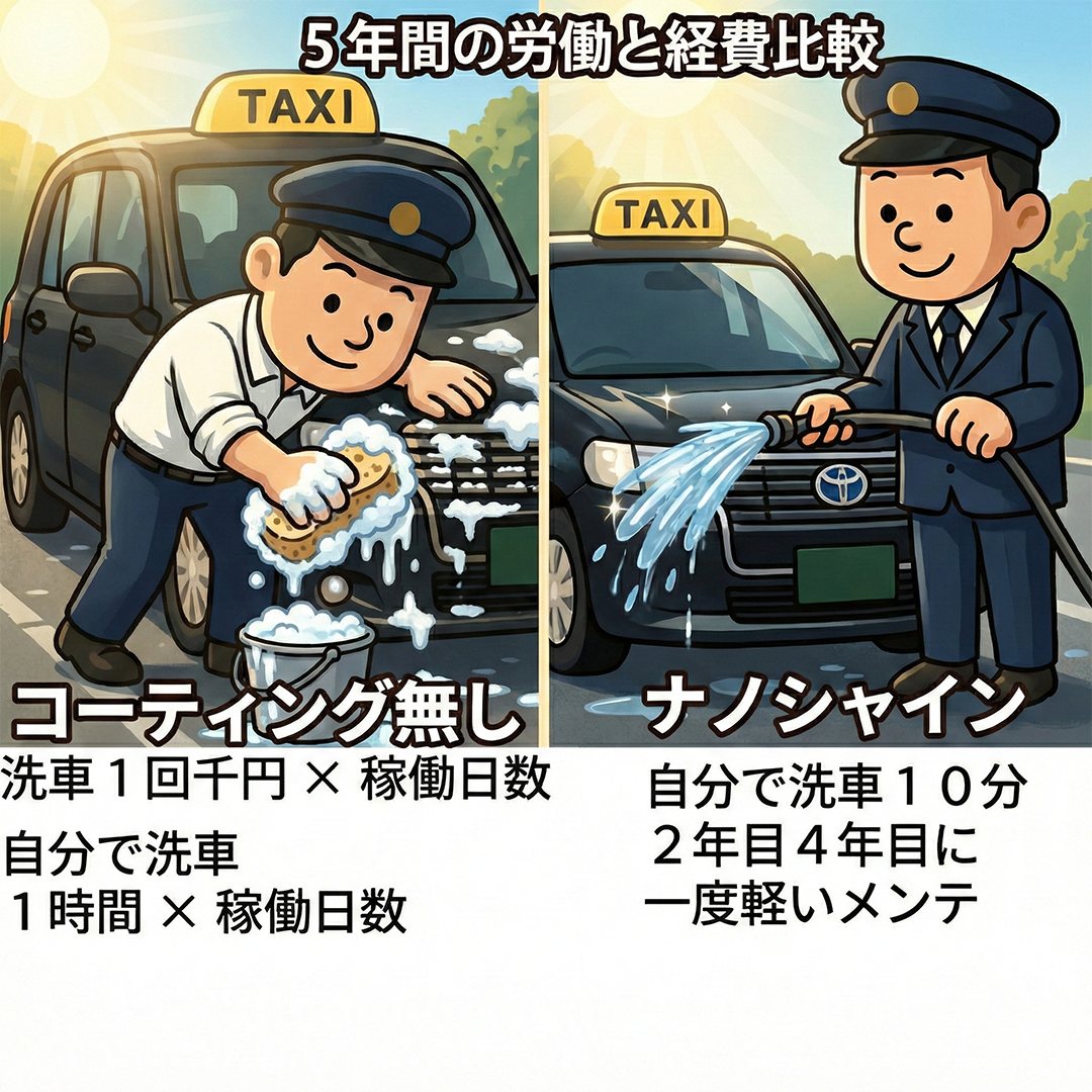 車両台数が多いほど、ナノシャインの防汚性能が大きな経費削減に直結します。