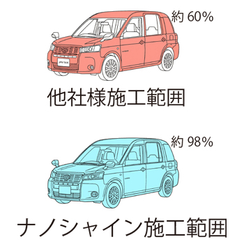 まるごとコーティング: 他社製品がボディのみに限定されることが多いのに対し、ナノシャインは窓ガラス、ホイール、樹脂パーツなど車全体に施工可能です。