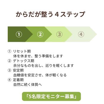 食事を中心に体の土台を整える1ヶ月の実践モニターです。