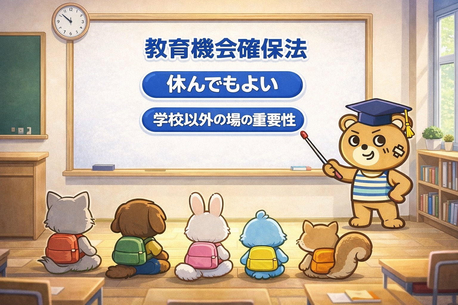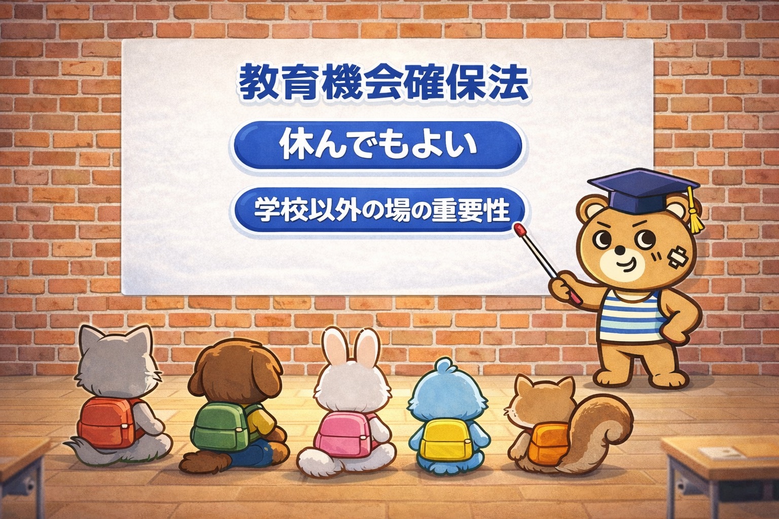 JOYは、2016年に制定された 教育機会確保法 の理念を重視しています。この法律では、不登校は問題行動ではないこと、学校に通うことだけが正解ではないこと、子どもの気持ちを尊重することが明確に示されています。JOYはこの考え方に基づき運営しています。