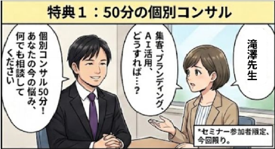 ①50分 個別コンサル(セミナー参加者限定・35,000円相当)