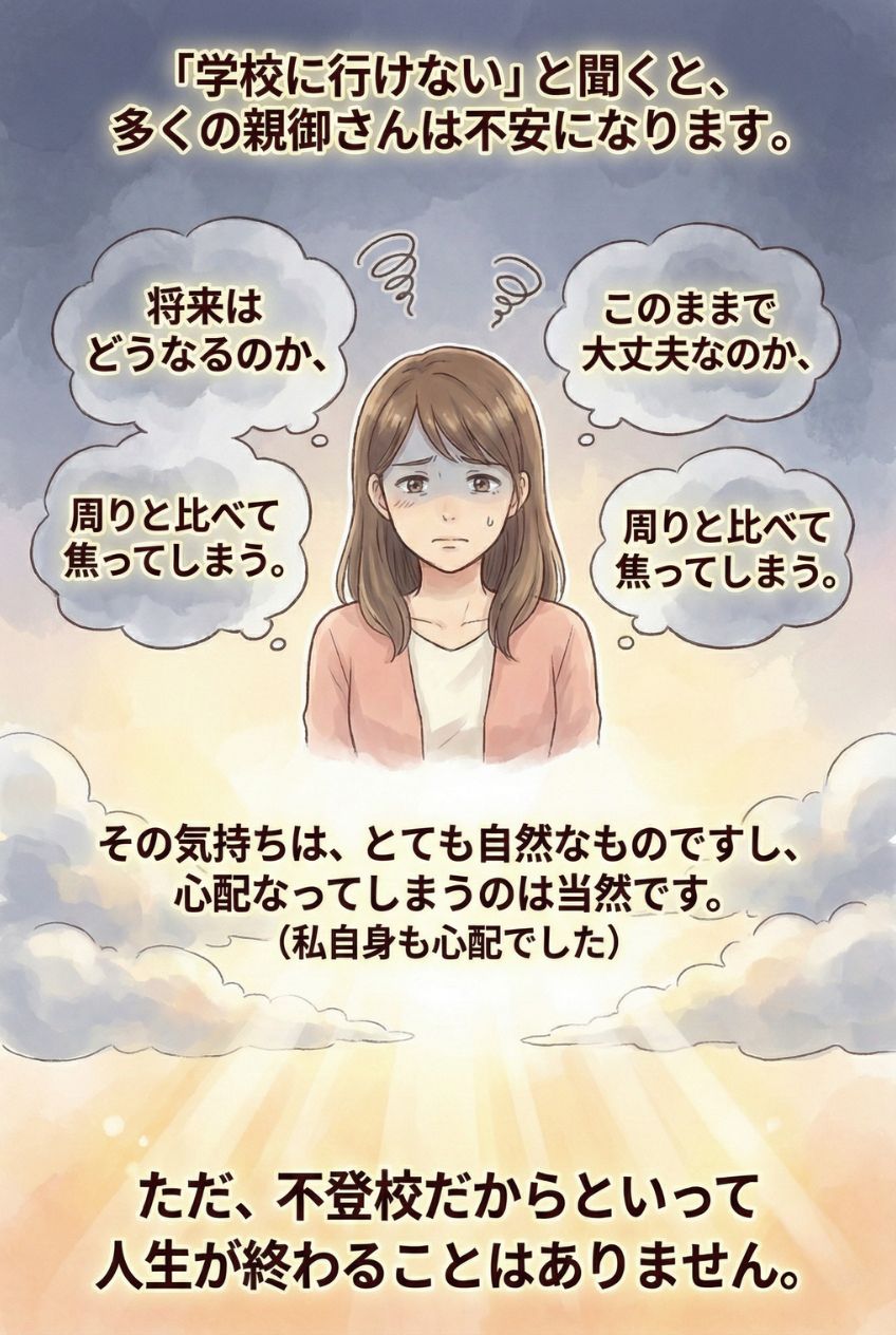 不登校でも大丈夫だと、親も子も安心できる社会をつくるための第一歩です。