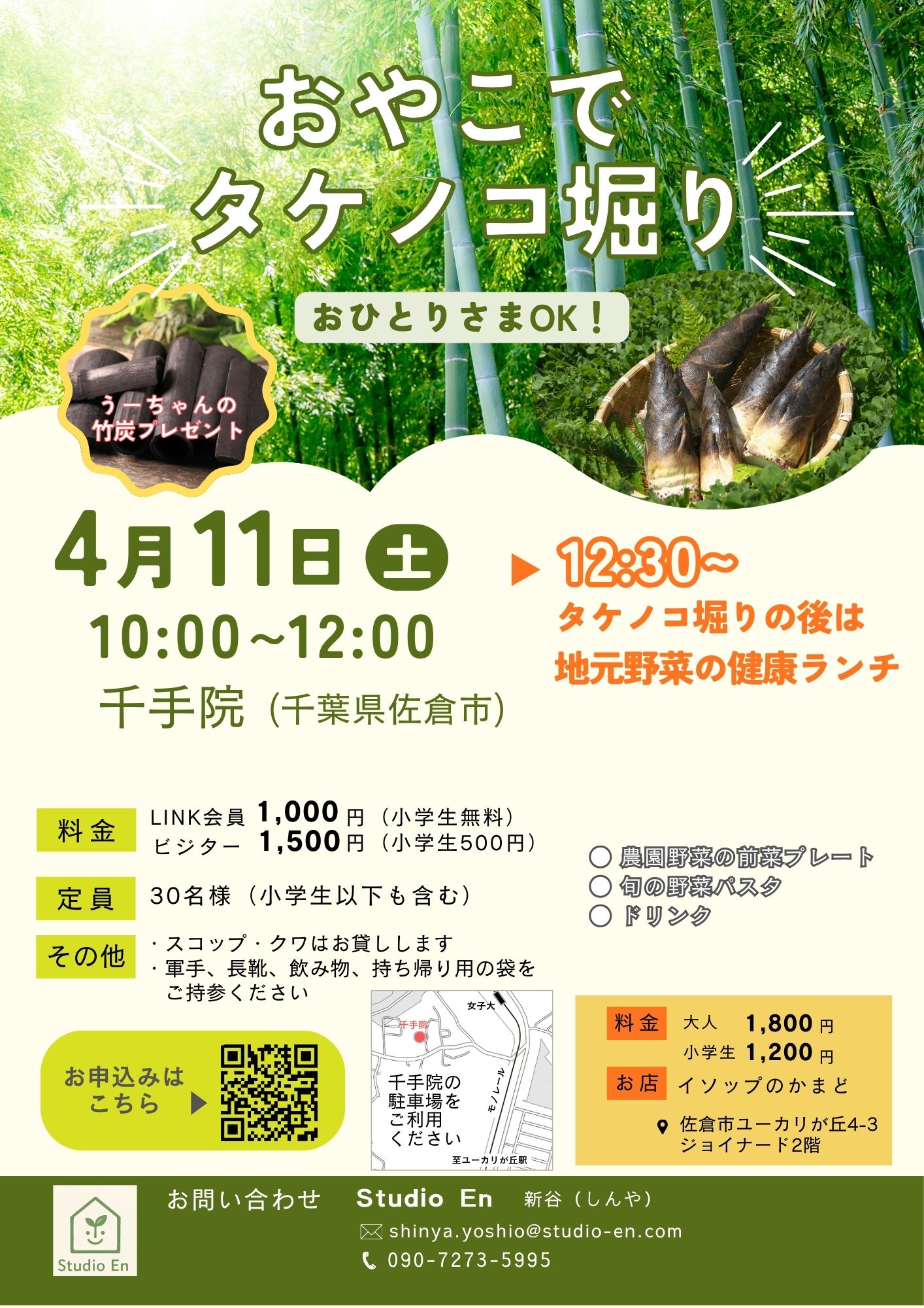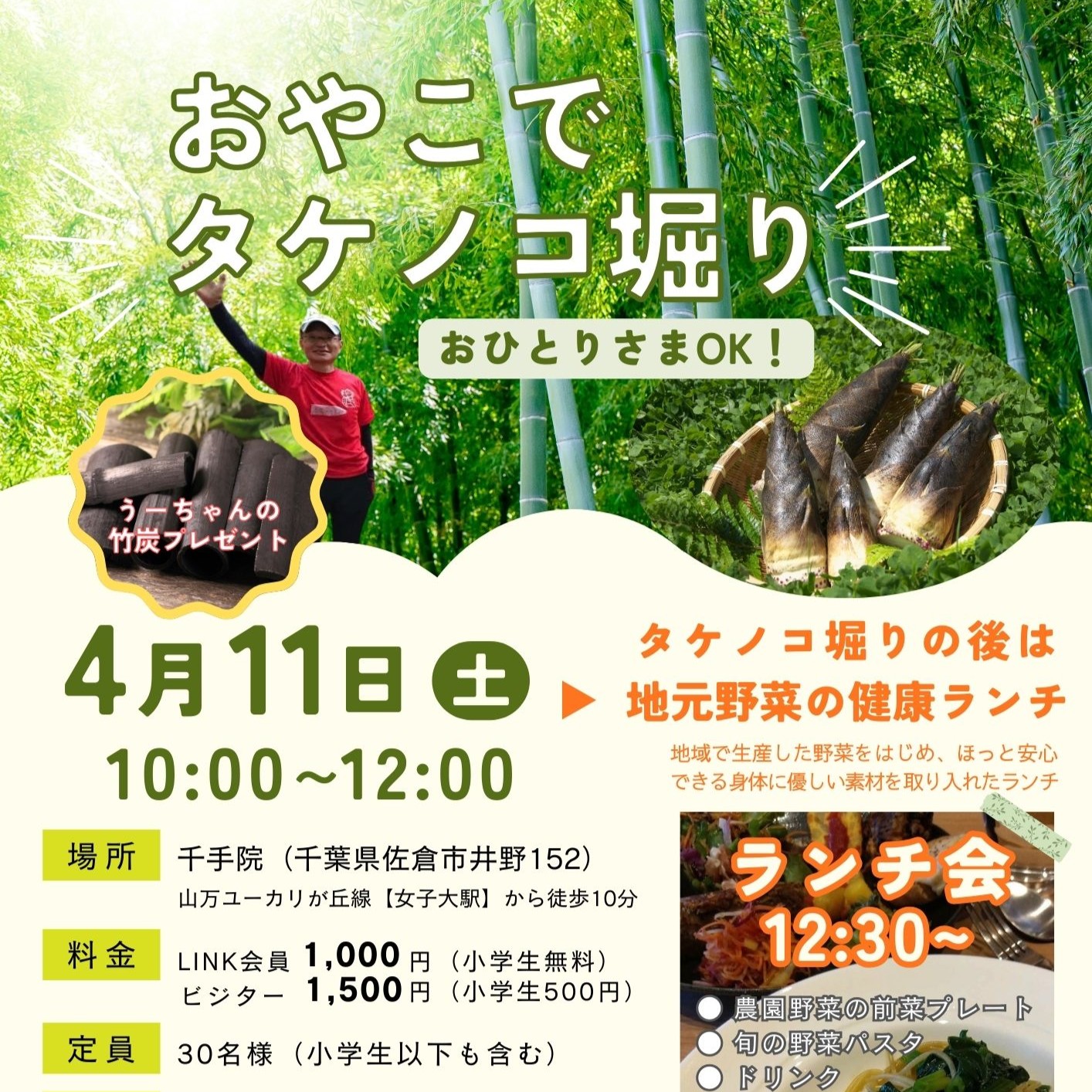 タケノコ掘り:LINK会員1,000円(小学生無料)/ビジター1,500円(小学生500円)
