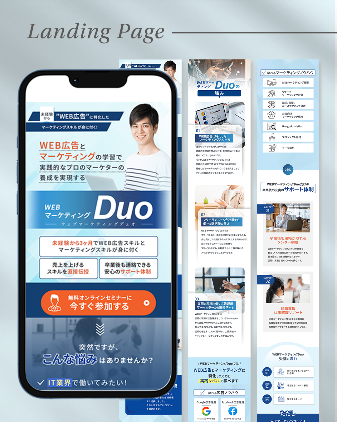 ヒアリングを行い、商品・サービスの内容やターゲットを整理したうえでLPを制作いたします。
