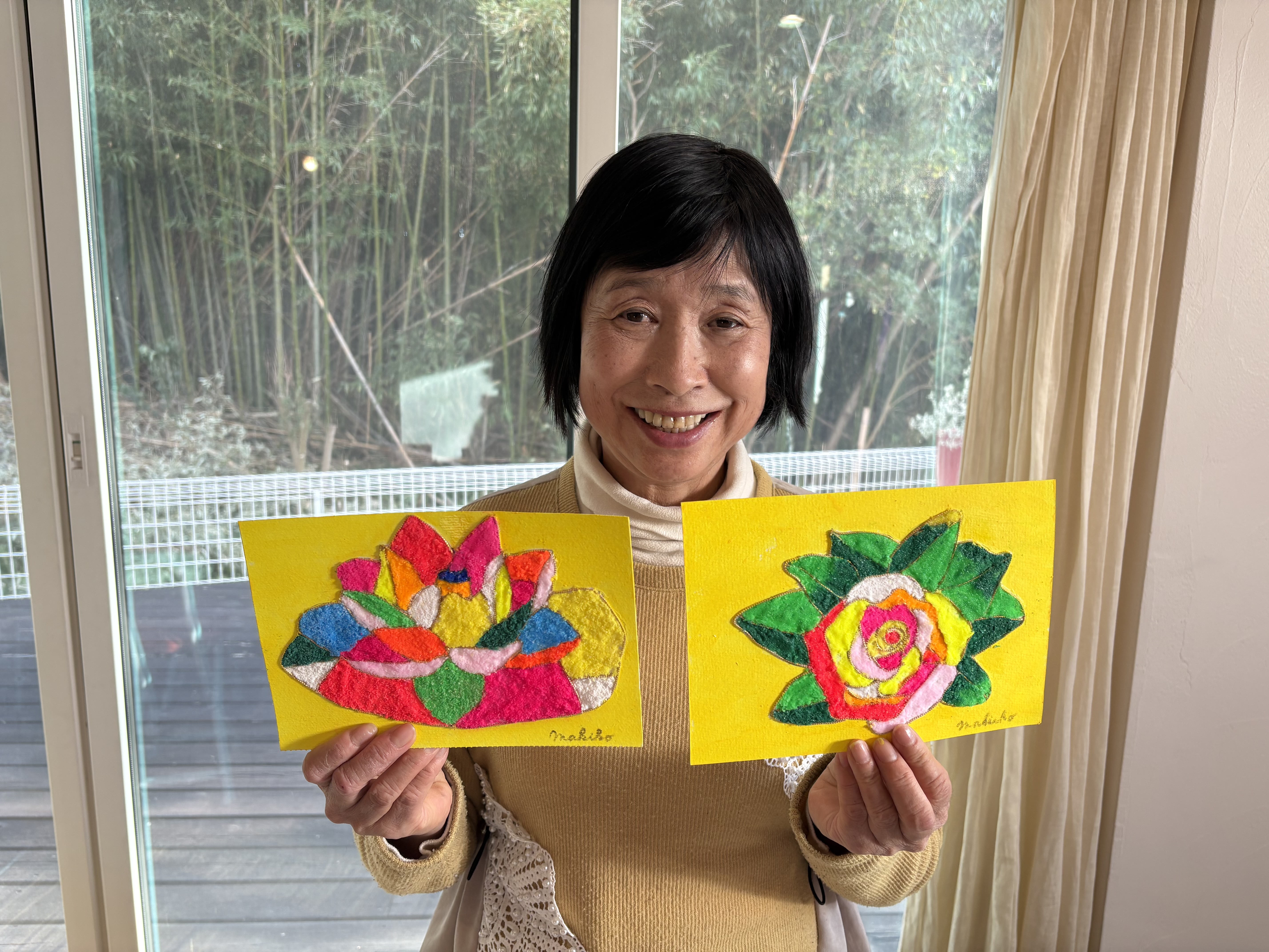 塩絵は17年前に寺田のり子先生によって考案された、世界だここだけの天然の塩の入った絵の具で描く絵画です。