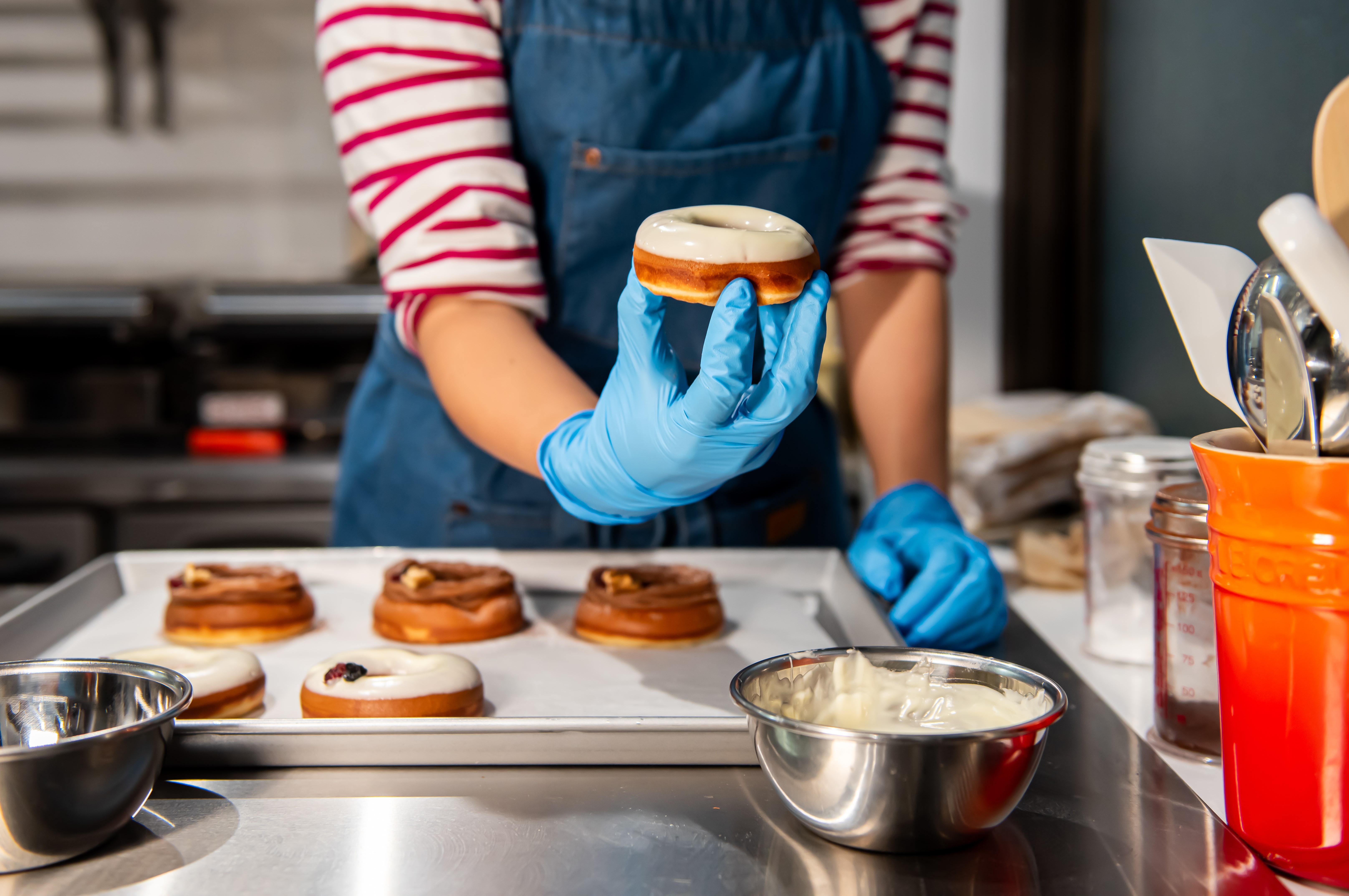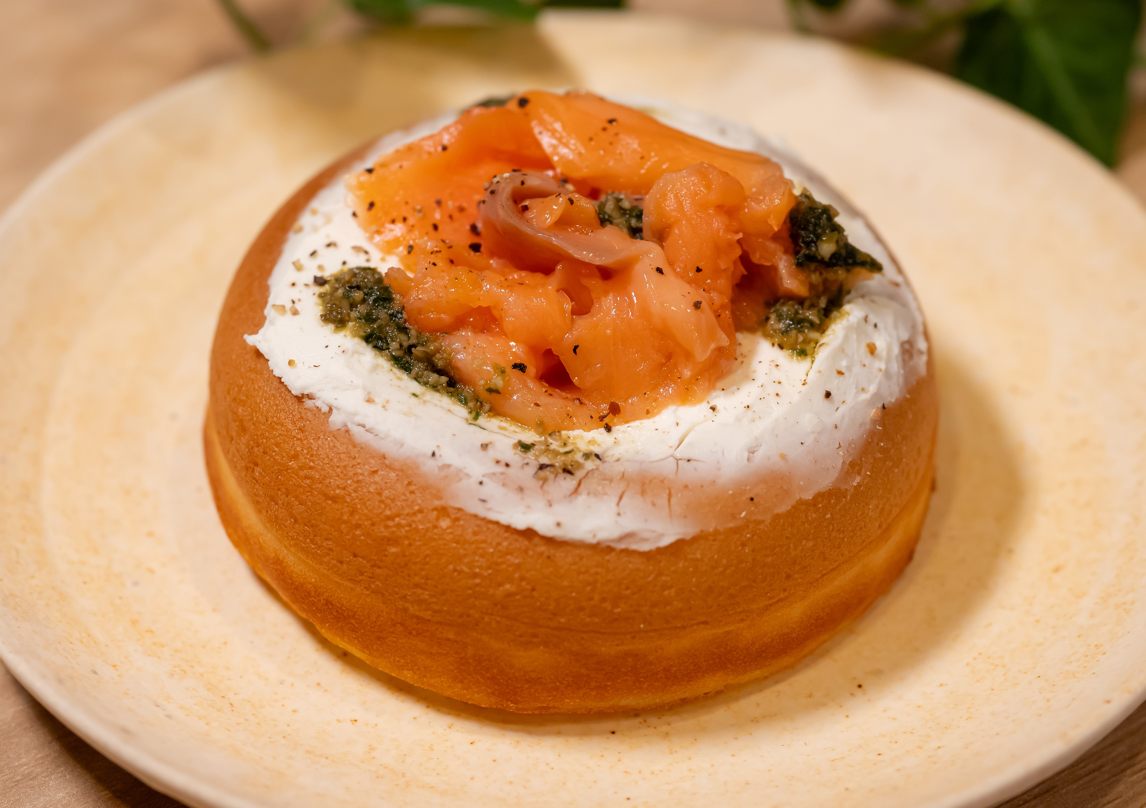 カフェでは、北海道産小麦粉と平飼い卵を使用したしっとりモチモチ食感の焼きドーナッツをお楽しみいただけます。