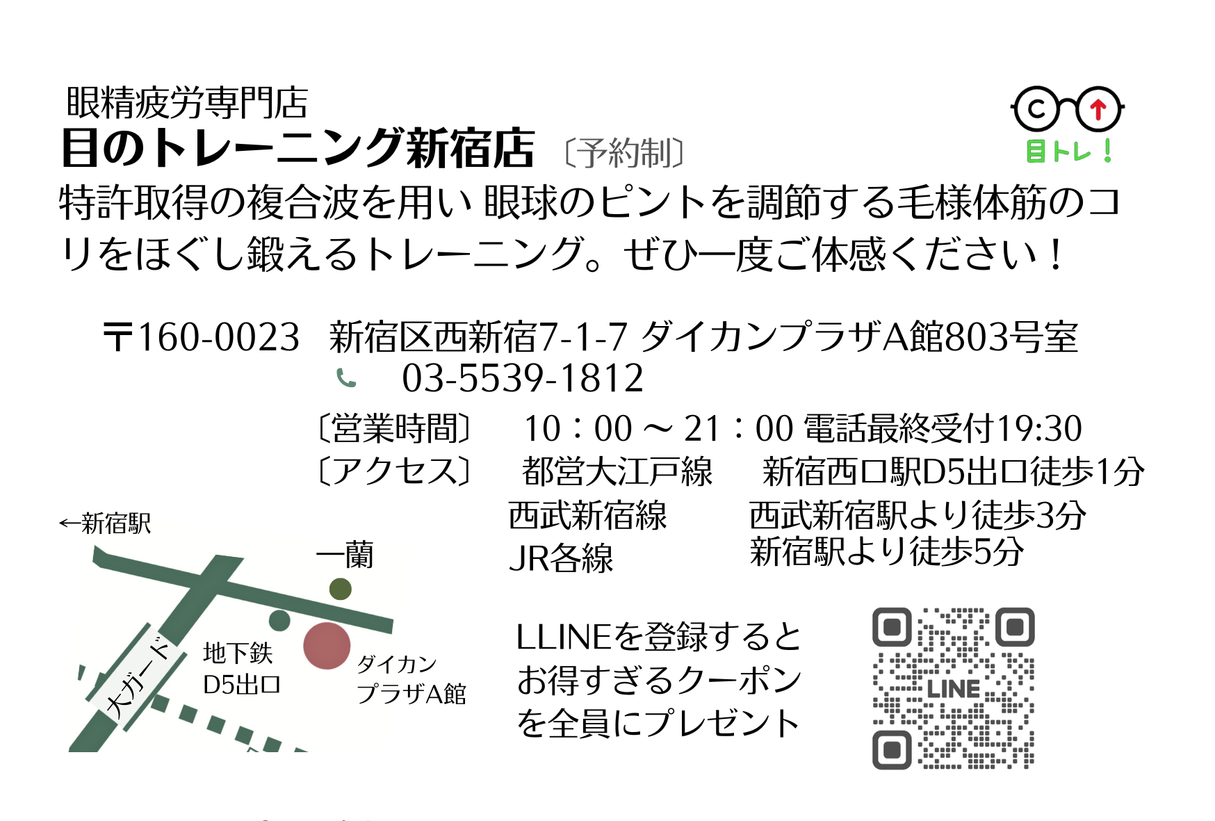 目のトレーニング新宿店は、眼精疲労専門店です。