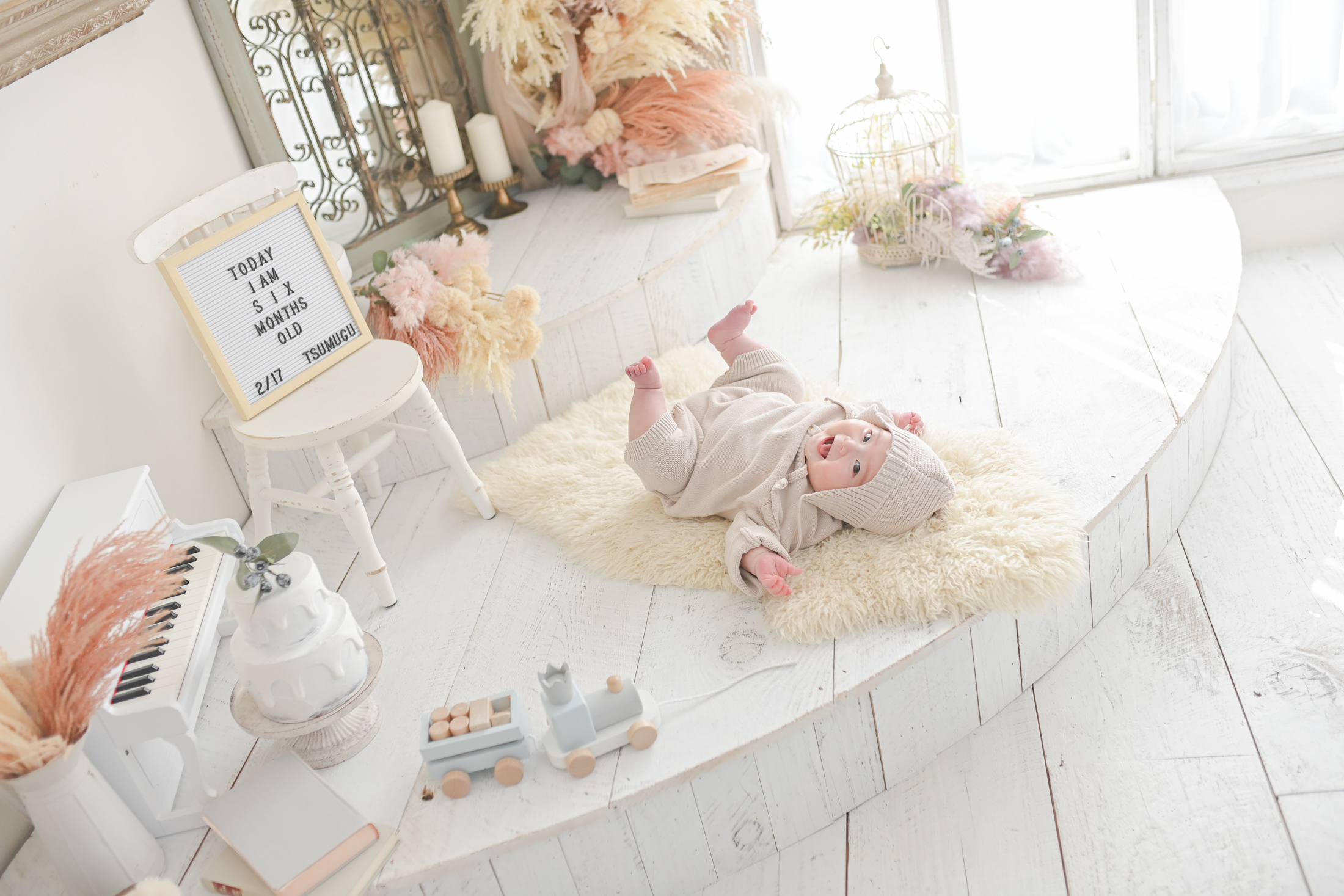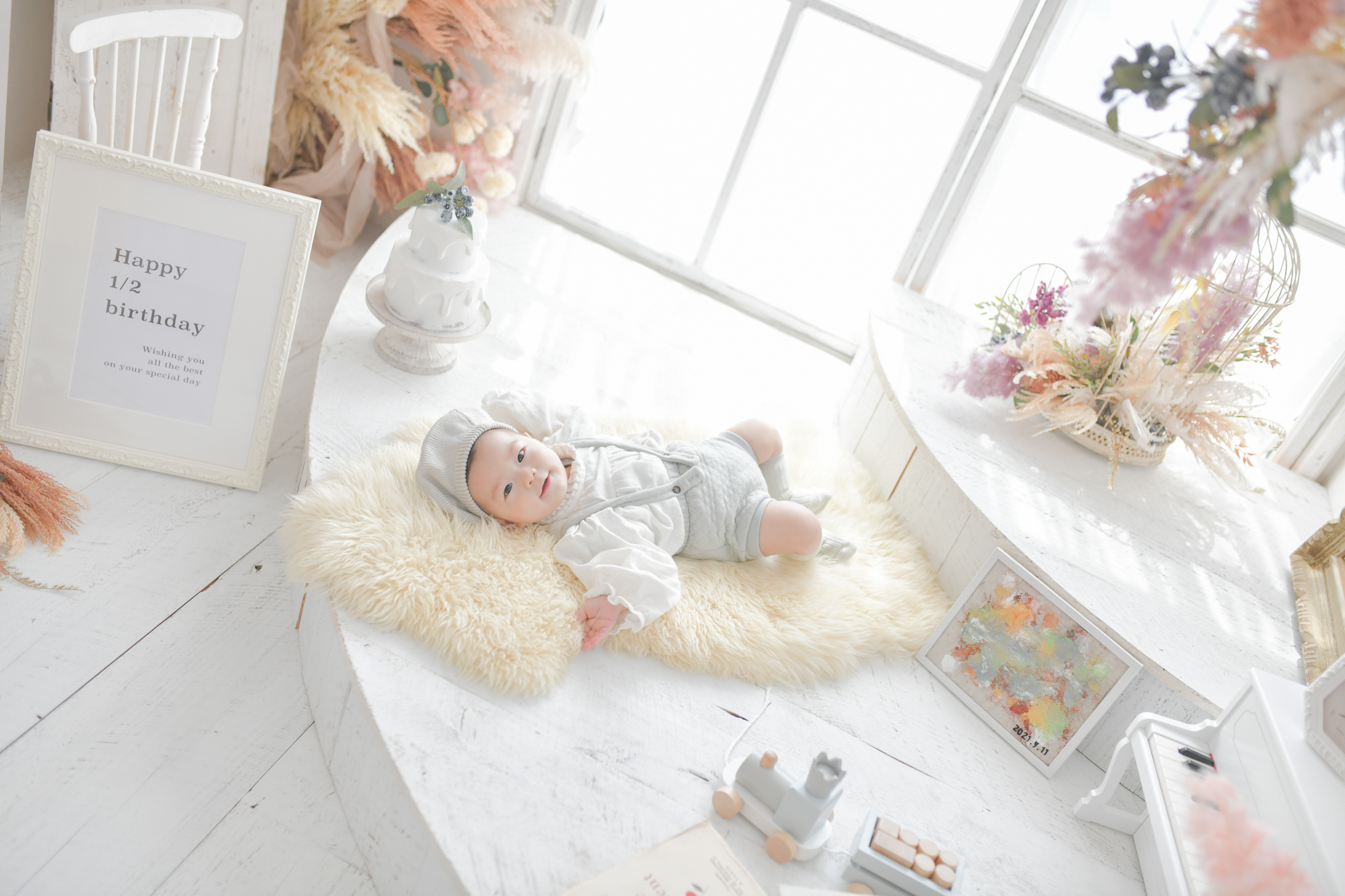 例えば、バースデーと一緒に兄弟姉妹のハーフバースデーを撮りたい!など対応可能です