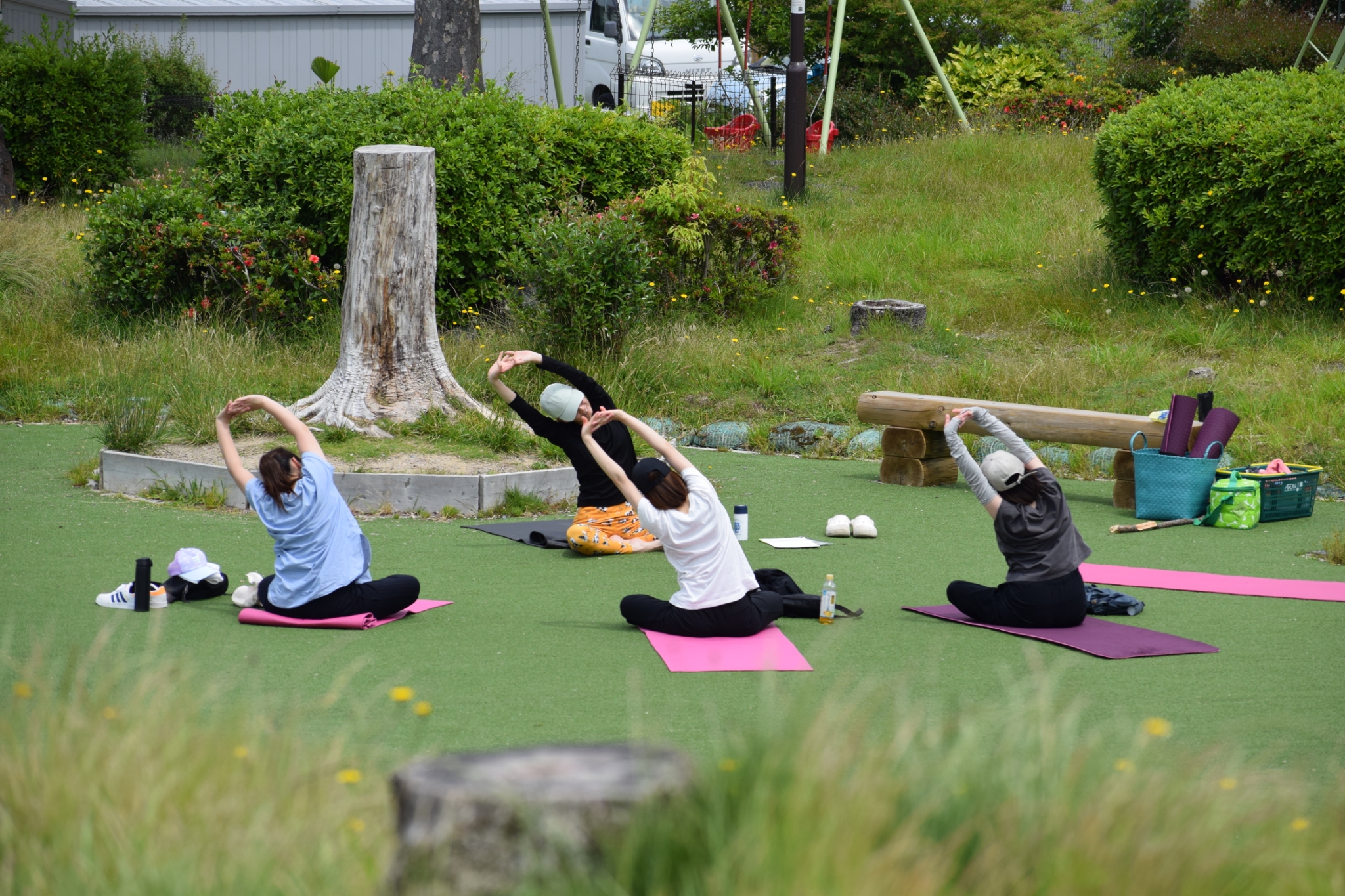 普段は和室でのレッスンですが、気持ちの良い時期には、公園ヨガもしています。