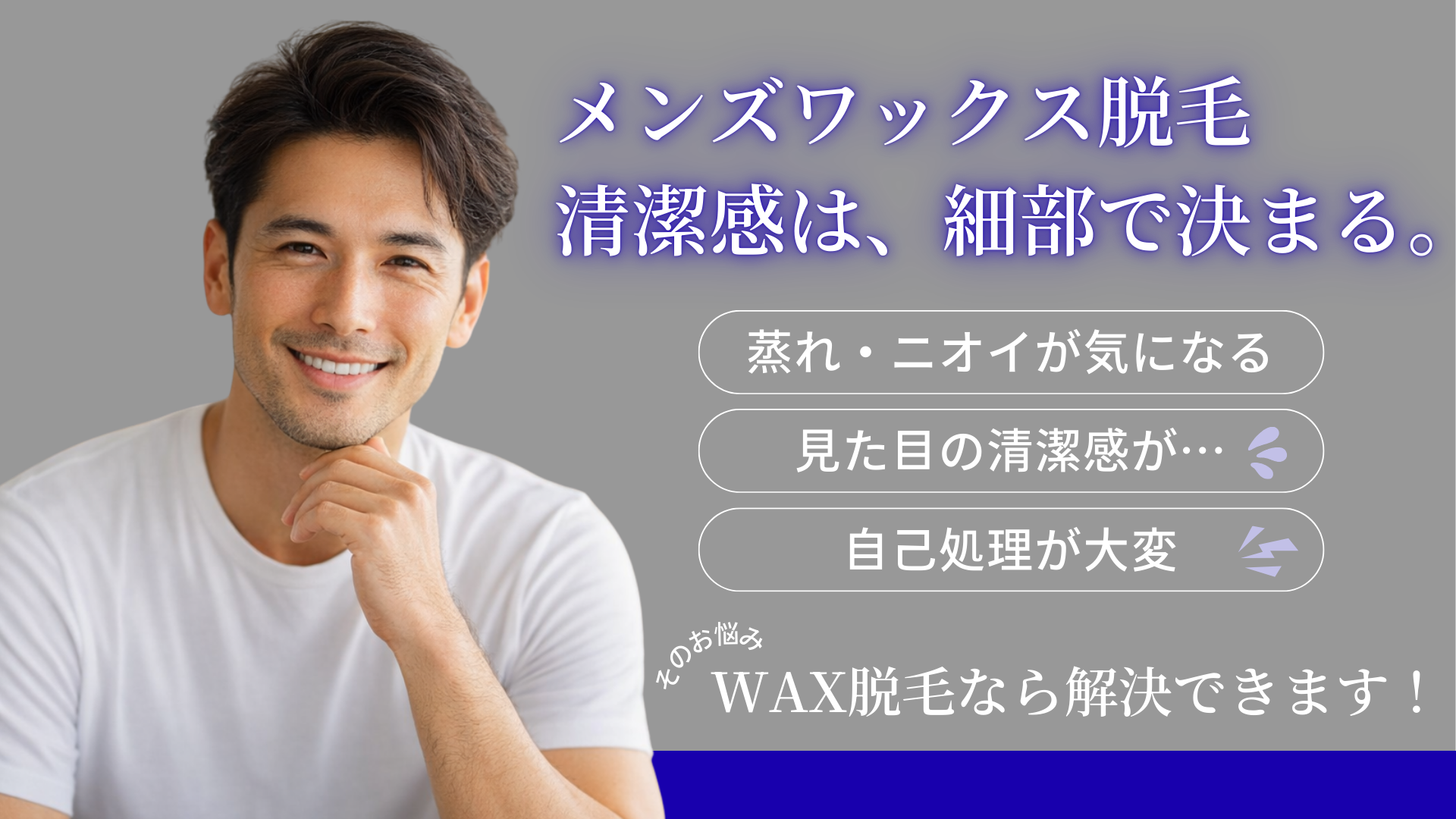 カミソリや除毛クリームによる自己処理は 赤みやヒリつきなどの肌トラブルの原因になることがあります。ワックス脱毛はプロが施術するため 自己処理の回数を減らし 肌への負担を軽減できます。他人の目が気になる という男性も増えています。
