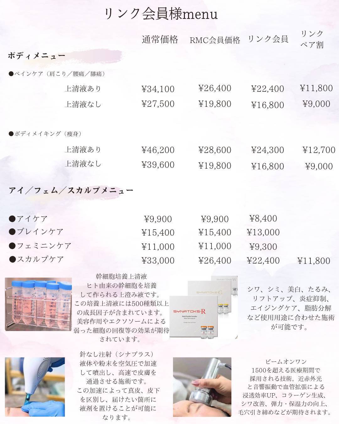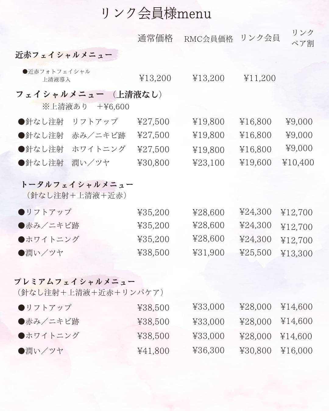 リンク会員様限定価格で施術できます。また当日中にリンク会員様2名が同メニューで来店されますと更にお得になります!