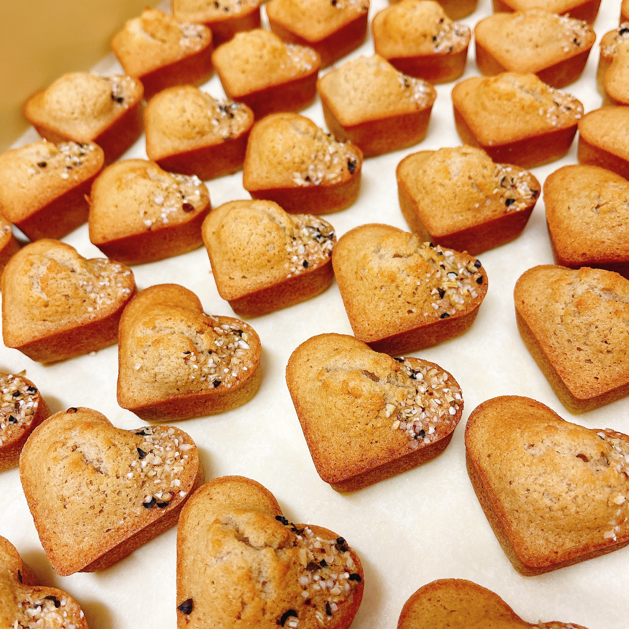 《フィナンシェ》米粉だけで焼き上げると、食感がもちもちしすぎてしまうので、蕎麦粉を入れ、小麦粉で作るフィナンシェと変わらないおいしさに。