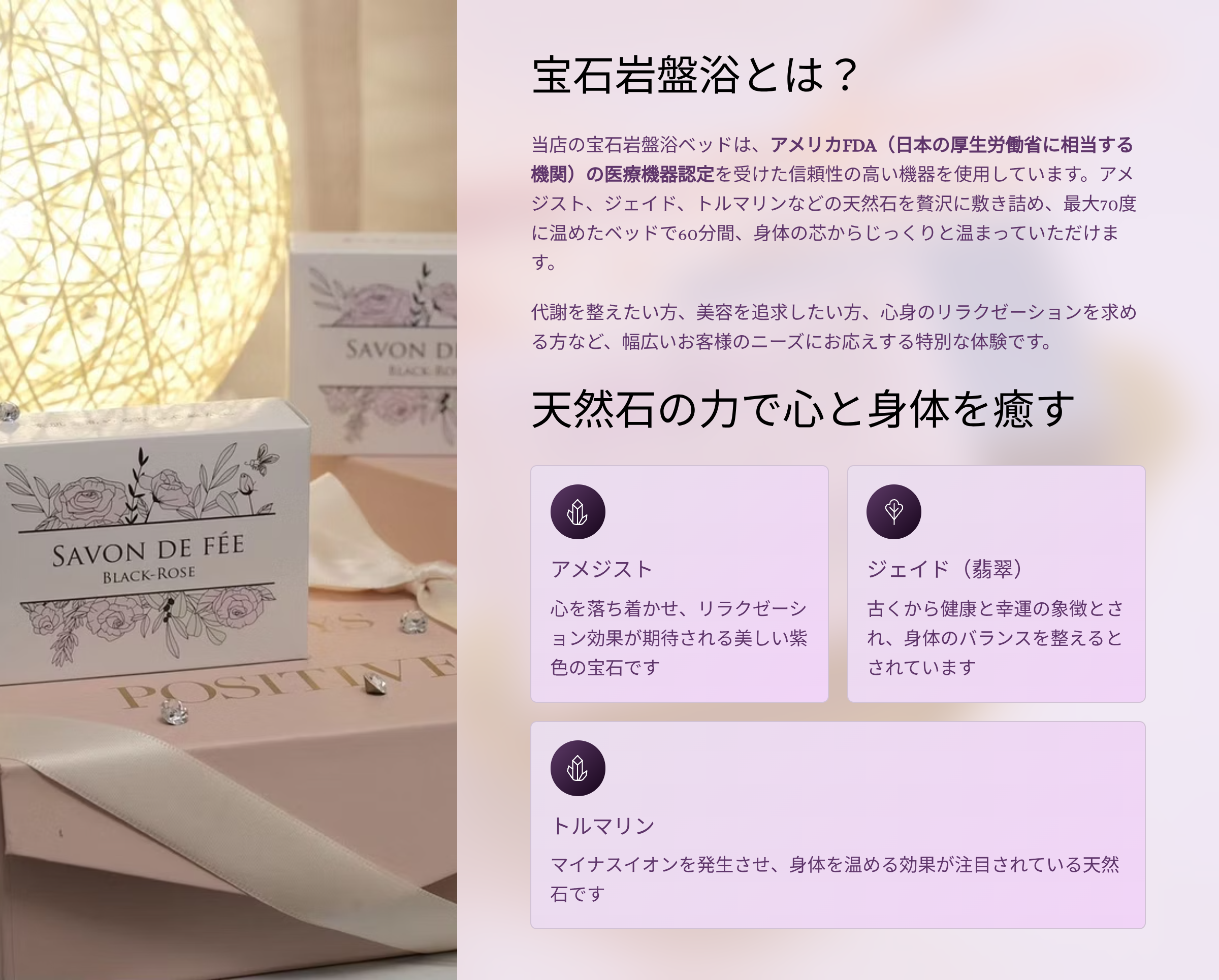 宝石岩盤浴の魅力を、より多くの方に知っていただきたく今回ご紹介しています。