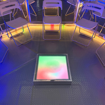 Q-bitホワイト量子体験型ショールーム「量子心愛(リョウシコア)ホームランド」では、細胞の最小単位「原子核」にまで到達し、その歪みを整えるファジー《あいまい》で強力な超微弱振動Q-bitホワイト量子を、全面鏡張りの正八面空間の中でリラックスして浴びることができます。