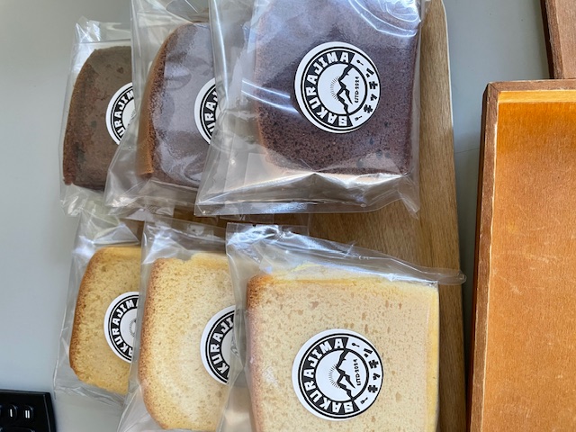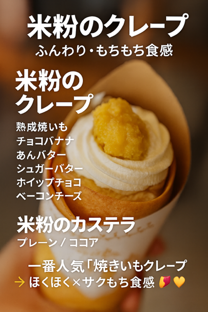桜島溶岩で焼いた熟成べにはるかの蜜芋を使用した焼いも、ねっとりとした食感 米粉のクレープとカステラも有り アレルギーの方もお楽しみ頂けます